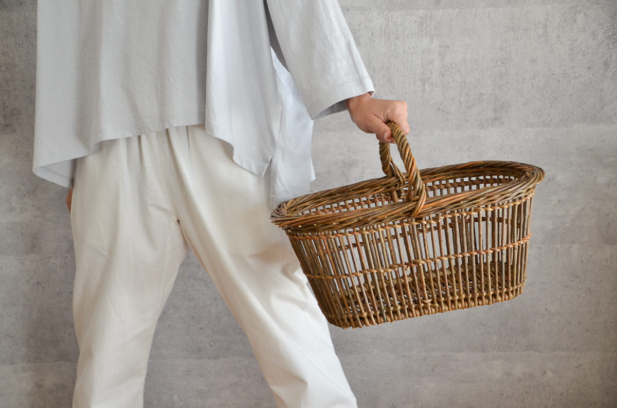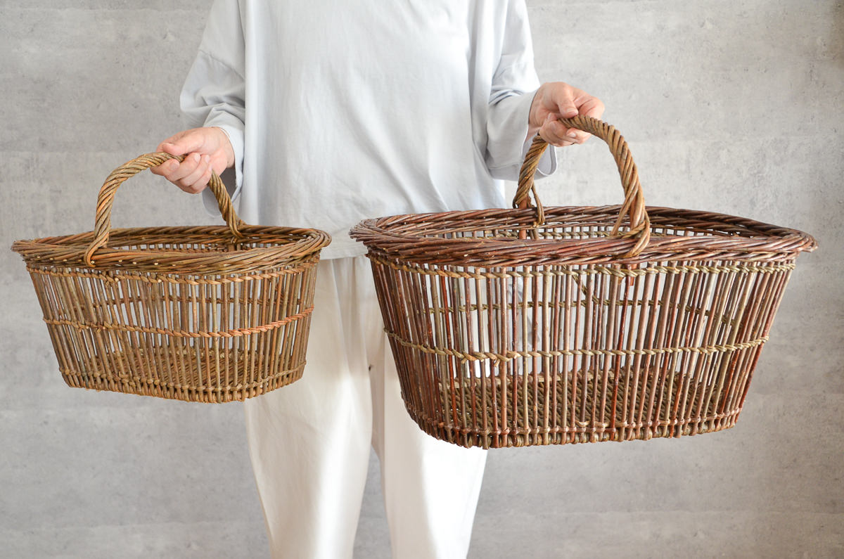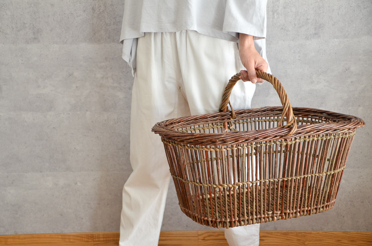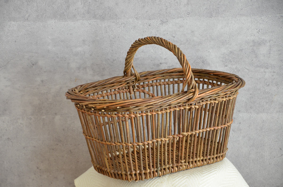 こちらはやなぎの枝を編んで作られた、持ち手付きのバスケットです。