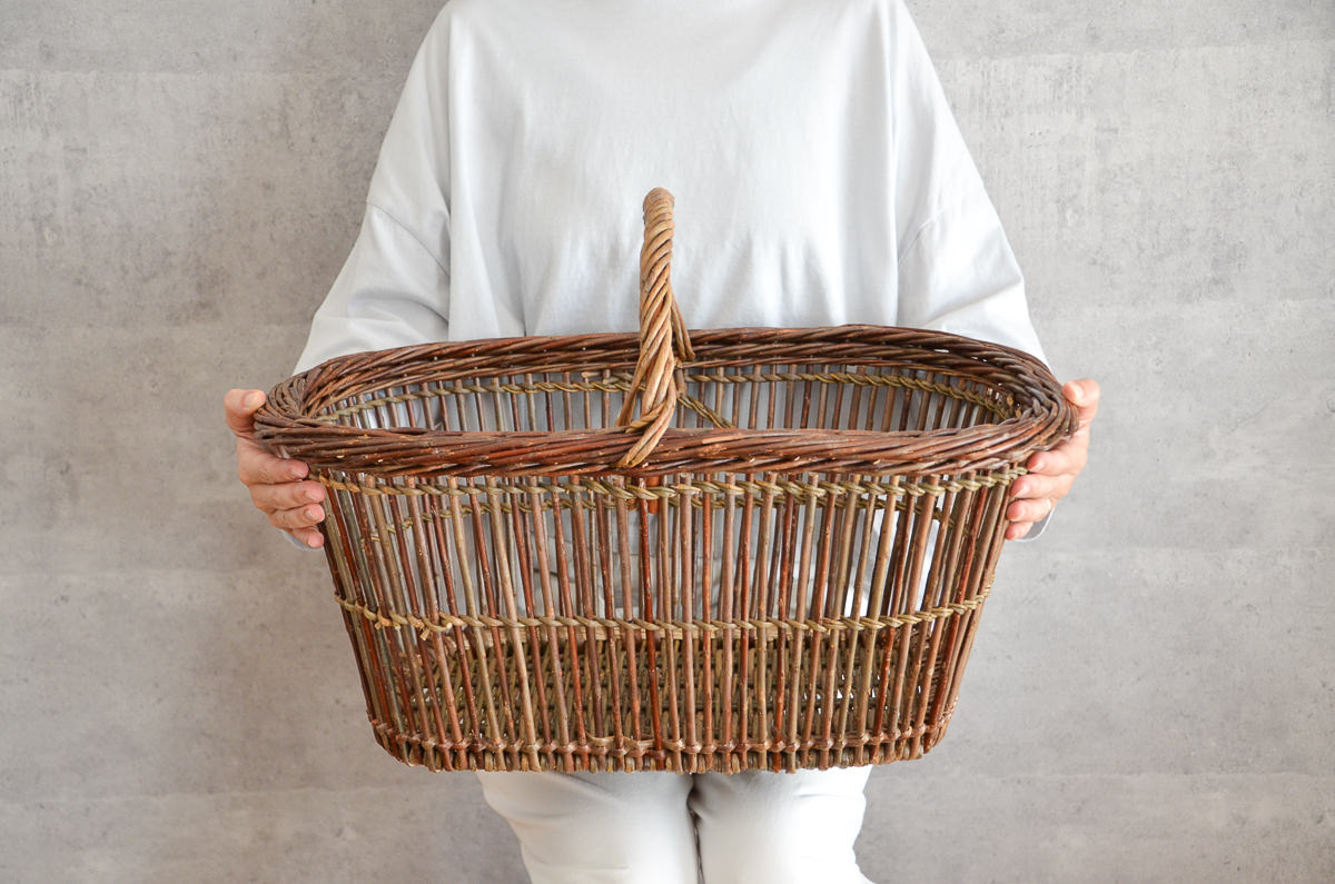 こちらはやなぎの枝を編んで作られた、持ち手付きのバスケットです。