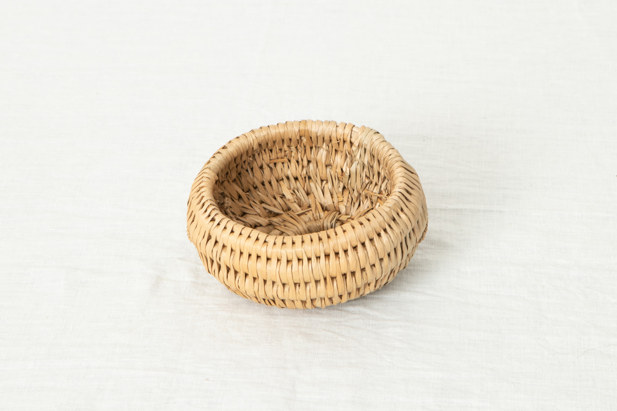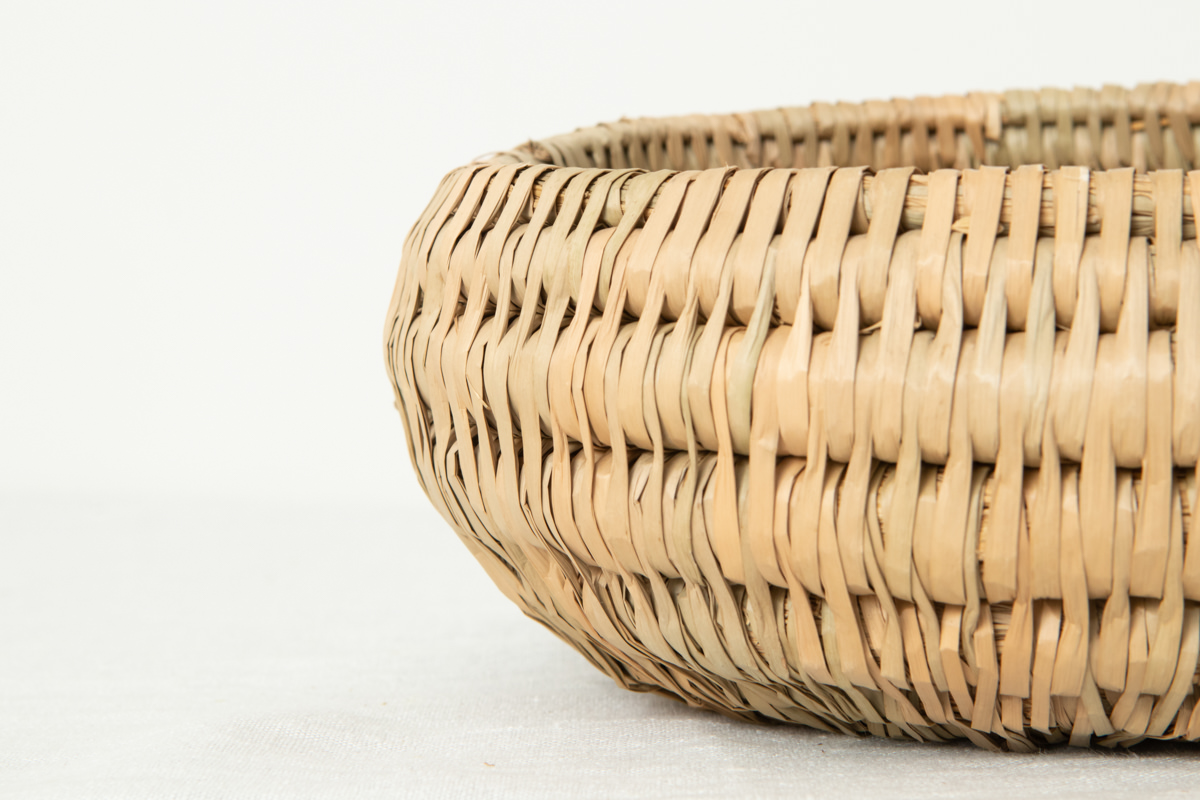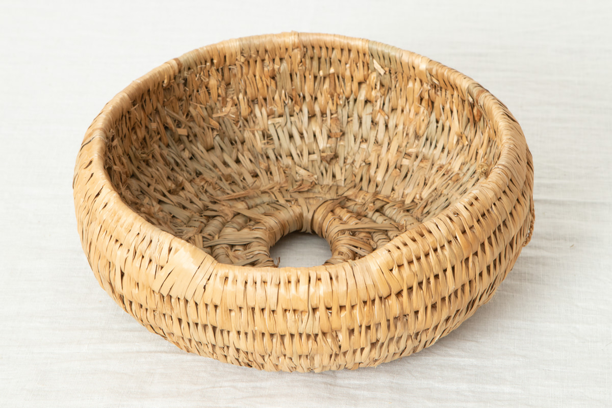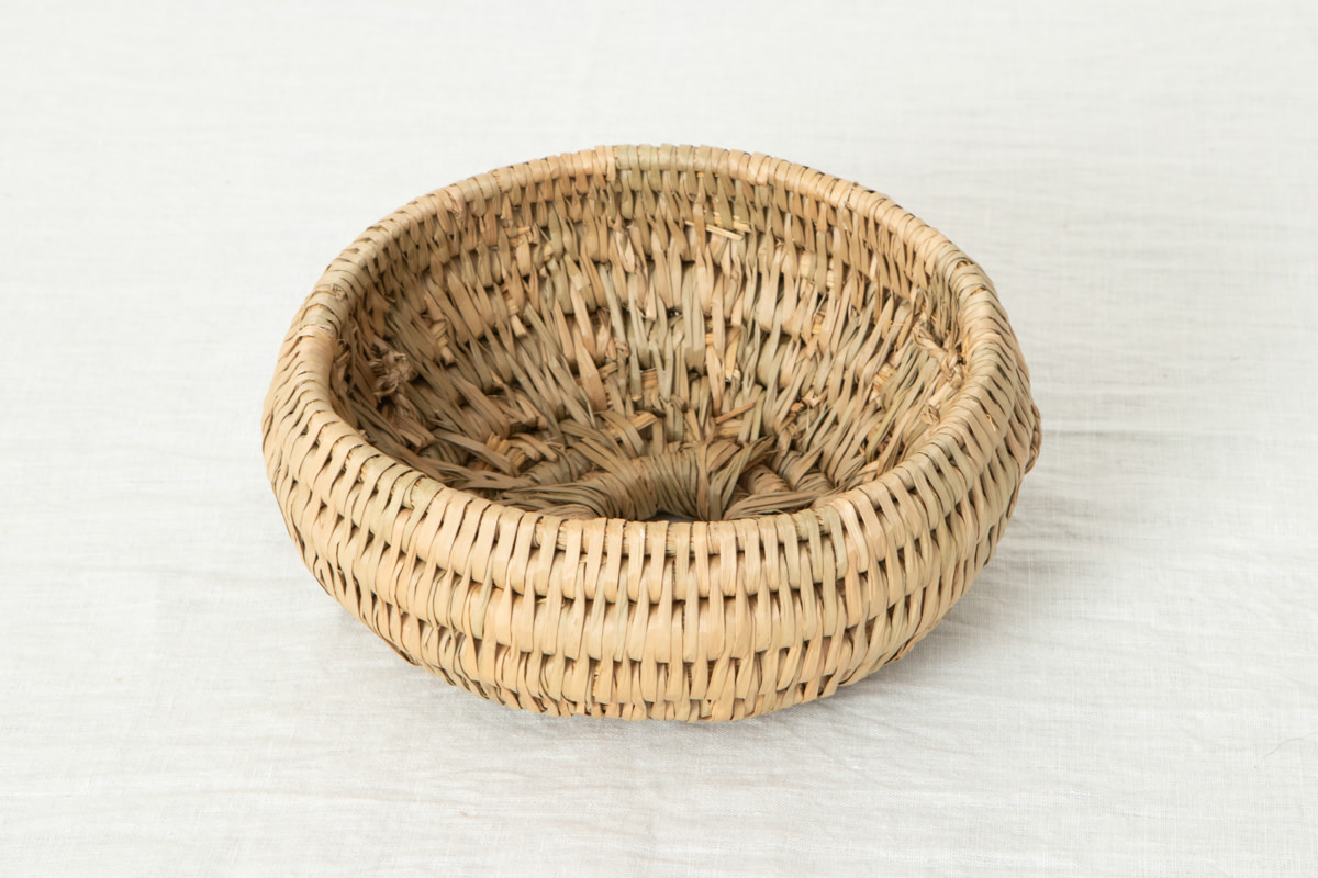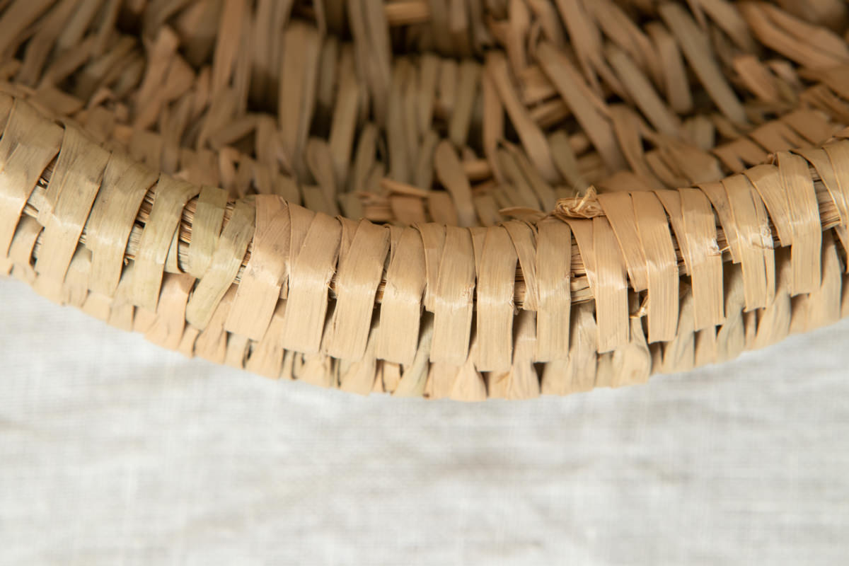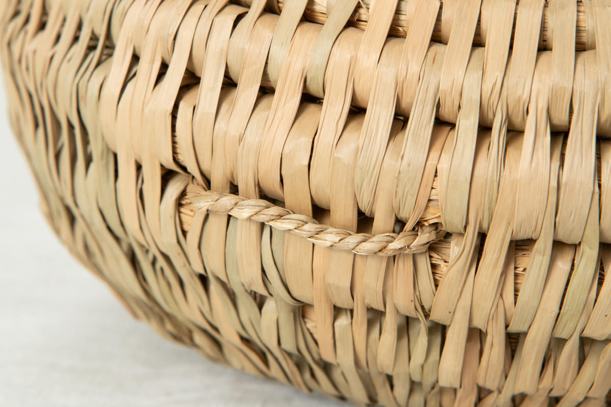 高い技術で仕上げられた稲わらのコイリング技法のかごで、