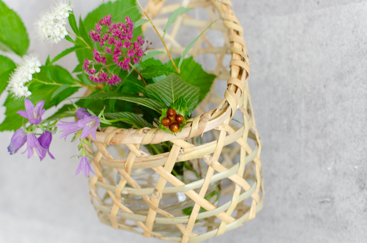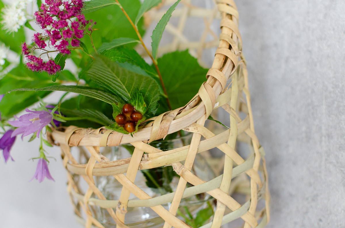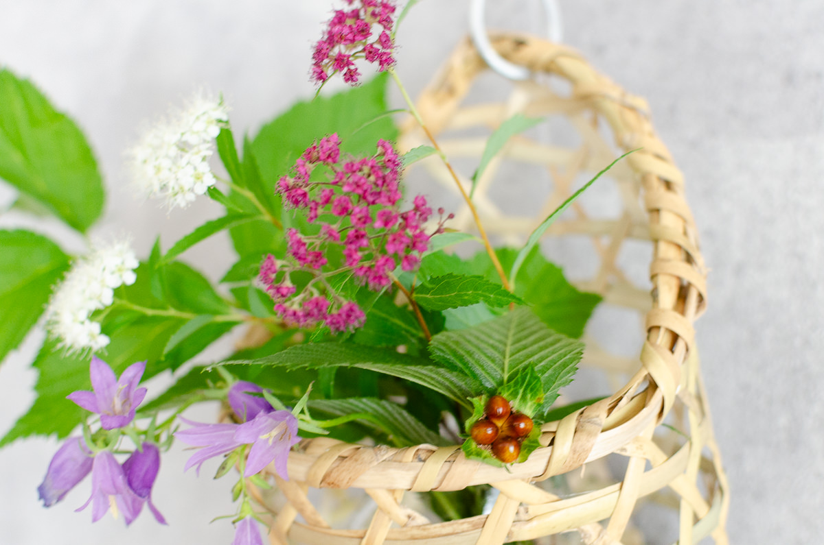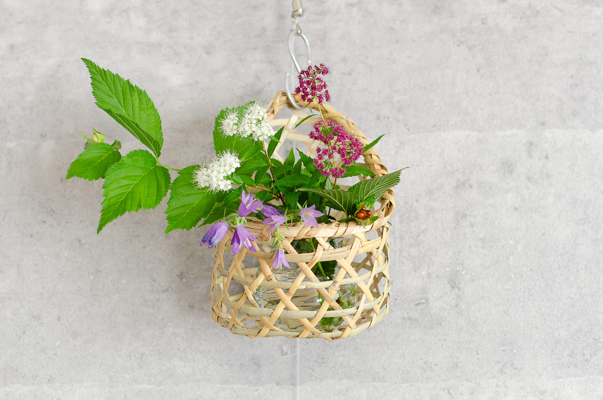こちらは両手に載るほどの小ぶりなかごで、花を活けたり
