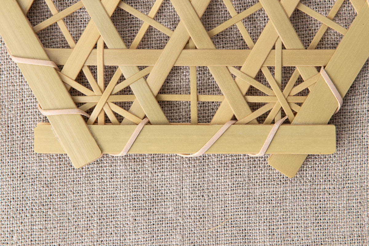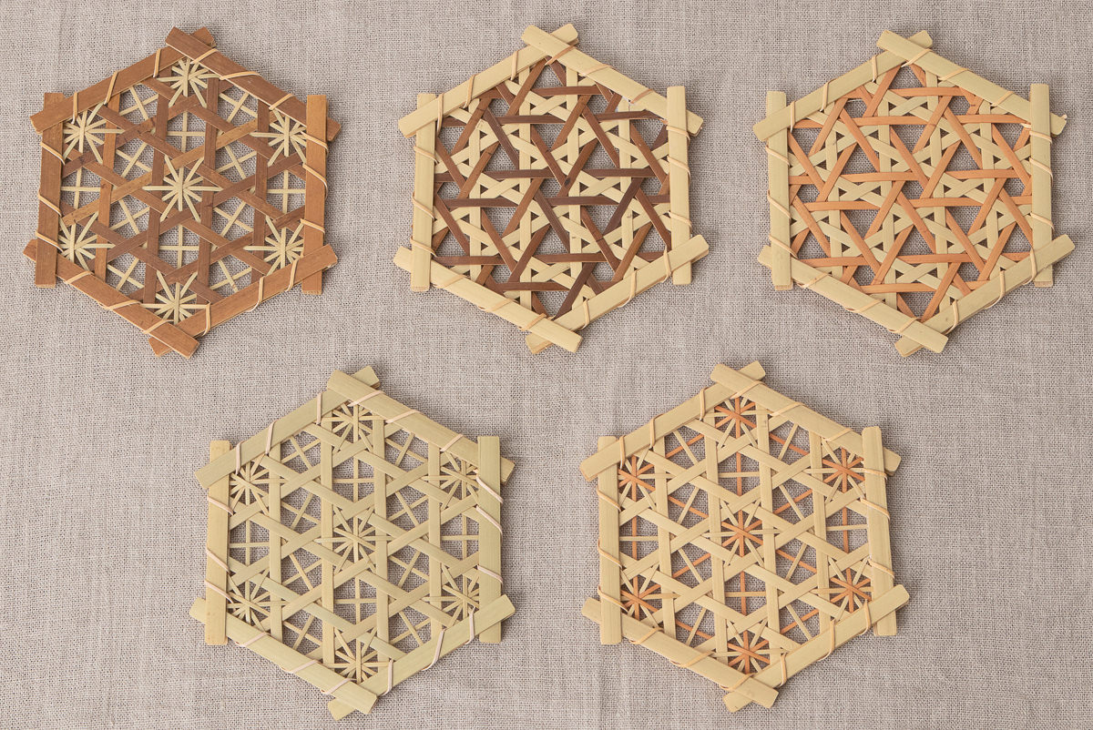 編み方は「菊六つ目編み」という菊の花をイメージした細かい編み方と、六角形をかたどる六つ目編みの中に、もう一つ六角形を作る「差し六つ目編み」の2種類です。