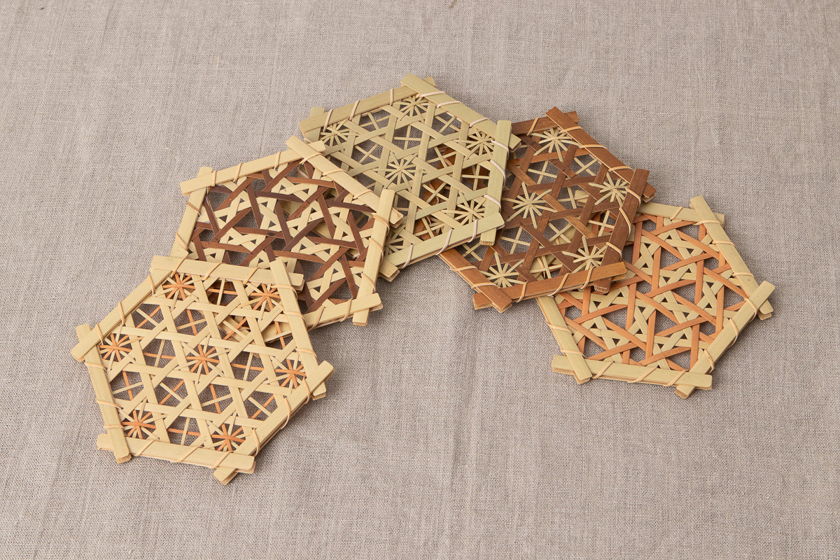 編み目、色味のヴァリエーション豊かな竹の鍋敷きです。