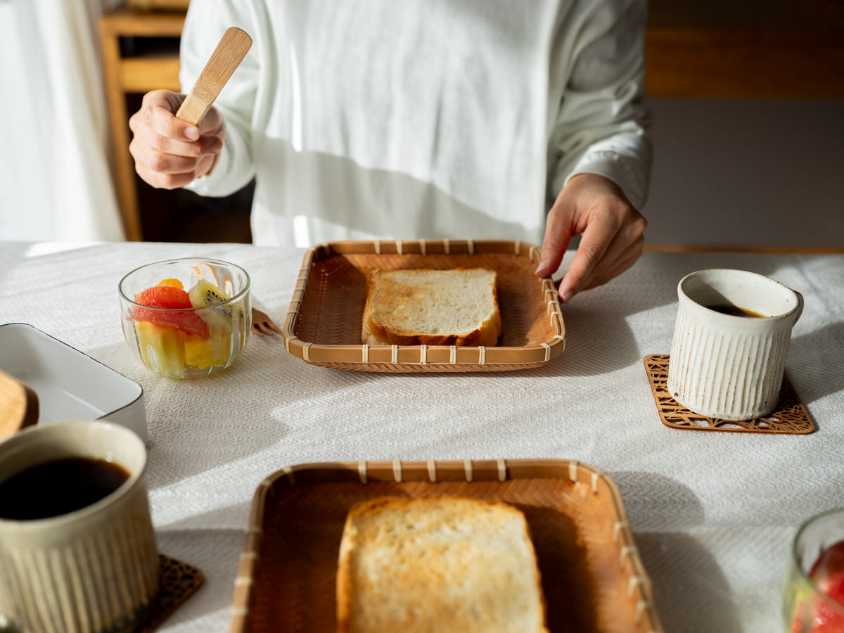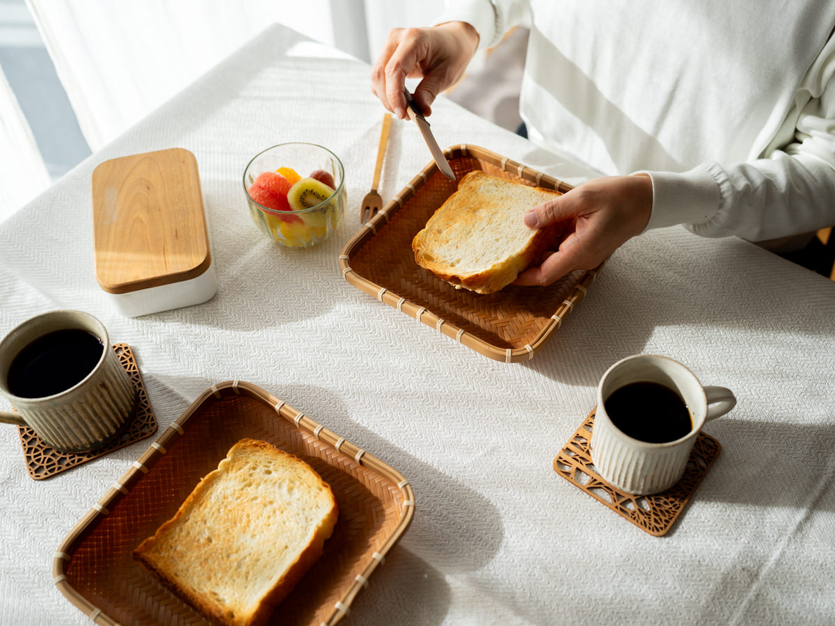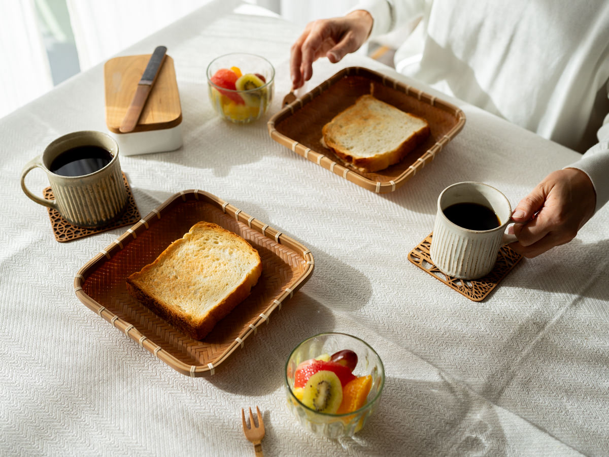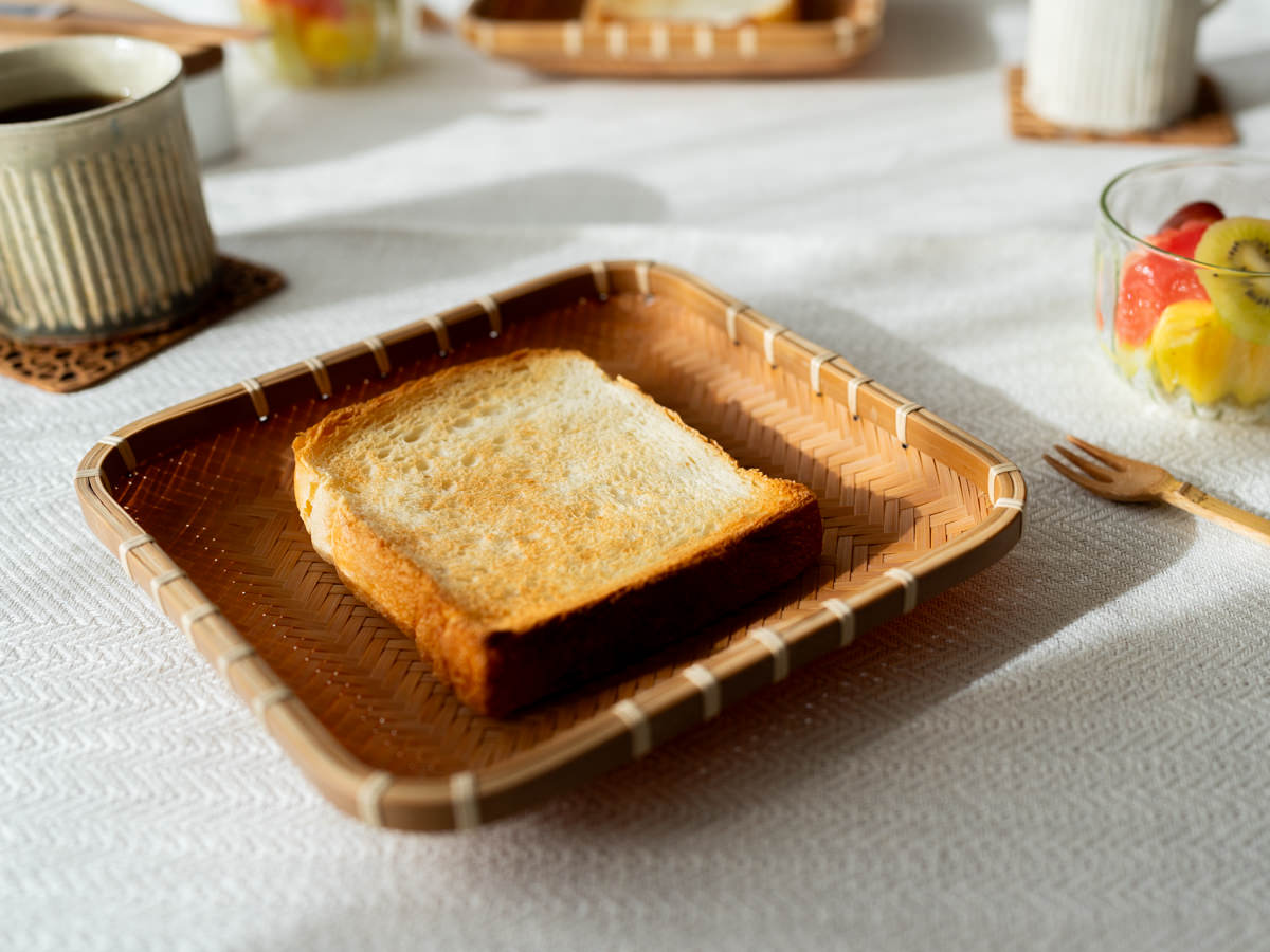 こちらの「角」タイプは、食パンのサイズにあわせて作られたそうです。日々の朝食の一皿に。