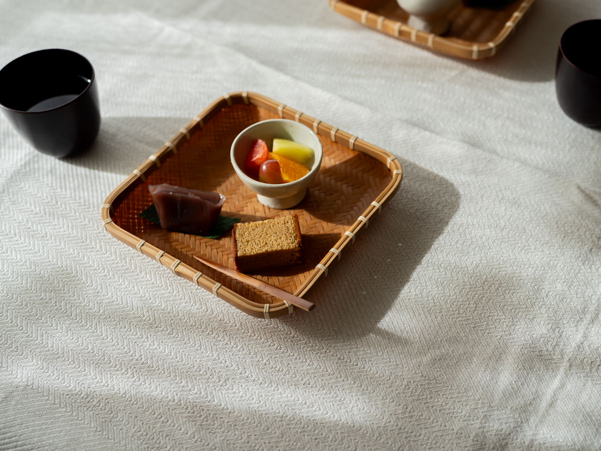 正方形をした、竹のお皿です。