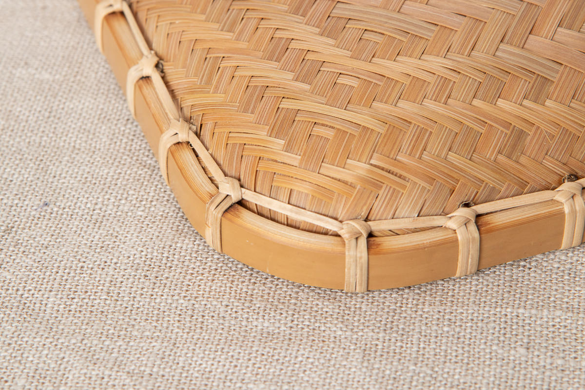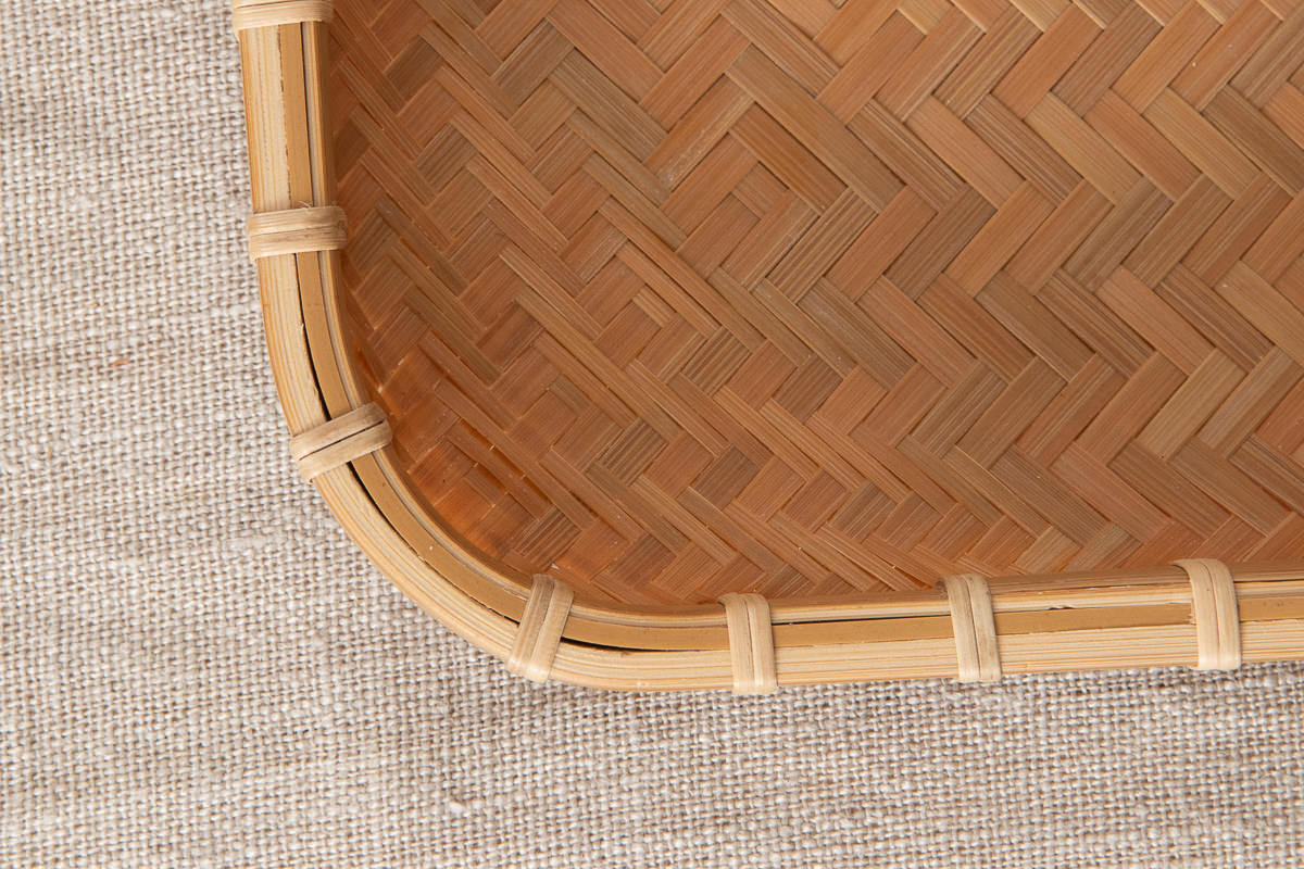 薄いひごから編まれた軽やかな一枚の竹皿。そこから生まれる奥行きのある模様は深みがあり、飽きることがありません。
