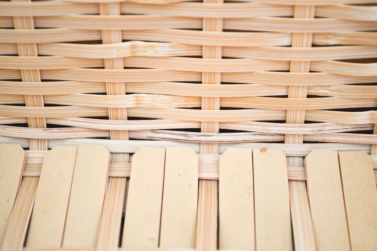 こちらのかごは「ござ目編み」という、縦横をシンプルに掛け合わせていく編み方で仕上げられています。「白竹」と言われていますが、実際は黄色みがかった色です。