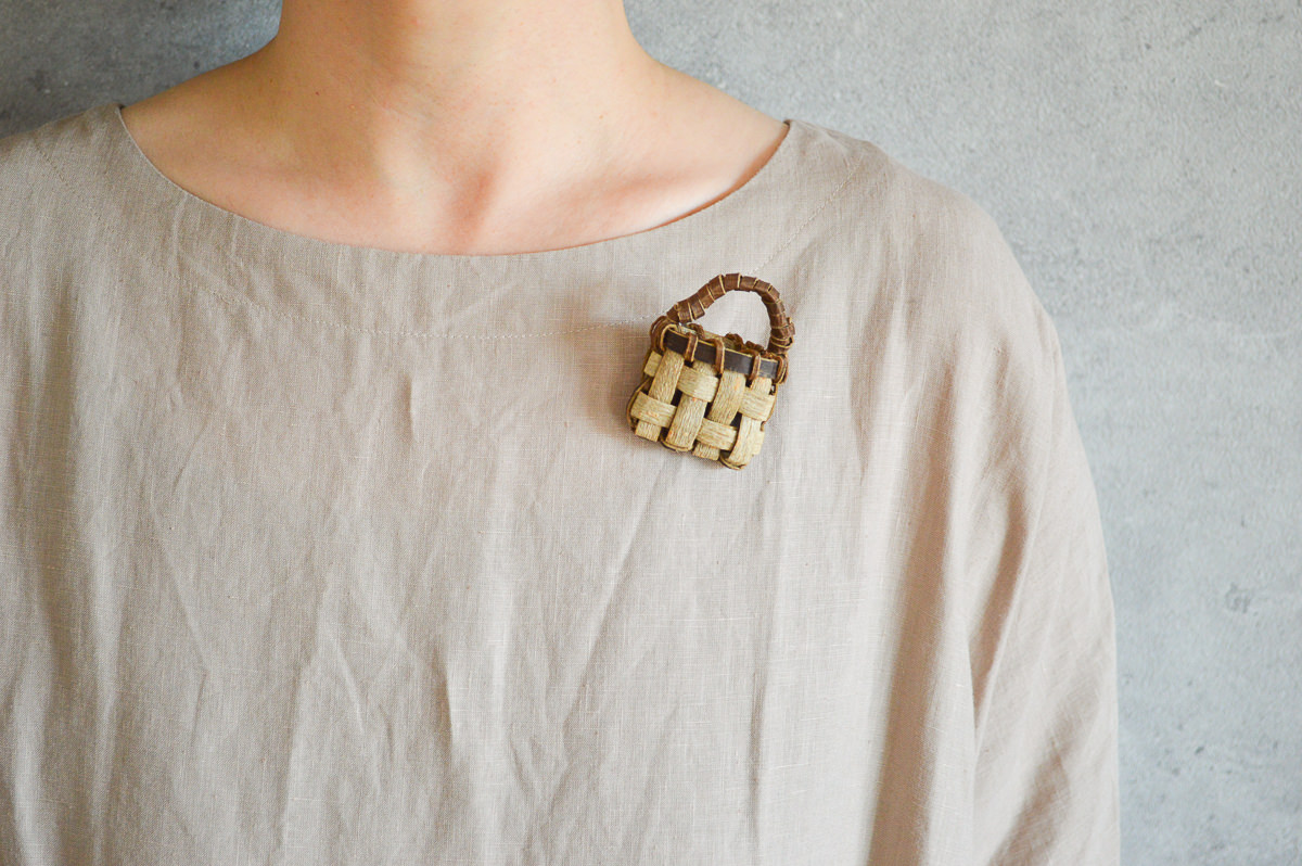 愛嬌があり、心が和む、かわいらしい「かごブローチ」。