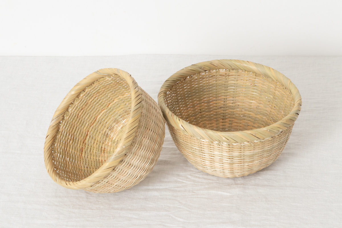 時折、ひごの折れやひび割れが見られますが、ご使用には問題ございません。また、個体差があり、ざるのゆがみが見られることもありますが、自然素材を使った手作り品のため、ご了承の上、ご購入いただきますようお願いいたします。