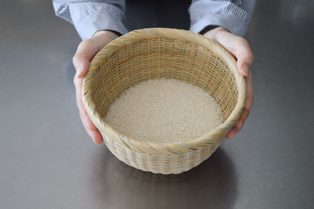 こちらは愛媛県の女竹(めだけ)を使って製作された米とぎざるです。