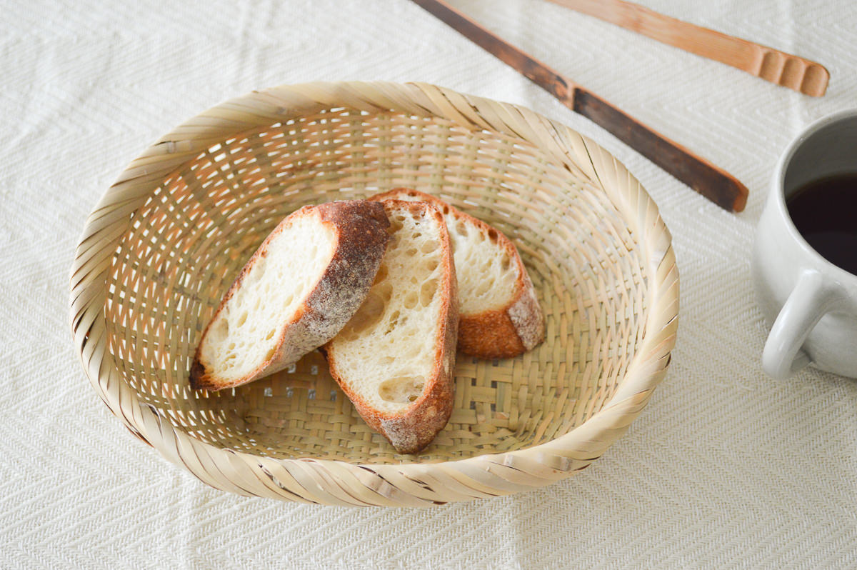 こちらは愛媛県の女竹(めだけ)を使って製作された「角平ざる(かくひらざる)」です。