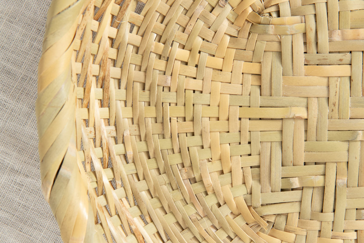 竹皮のツルツルした面を表にして編まれています。水をはじき、竹のささくれで手や食材を傷つけにくい仕様です。