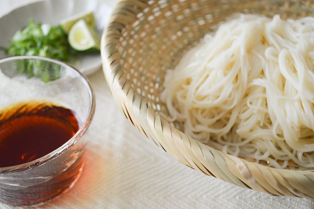 そうめんを2把(100gほど)をのせたところです。お使いのあと、油がついたときには、中性洗剤を少量つけて、
