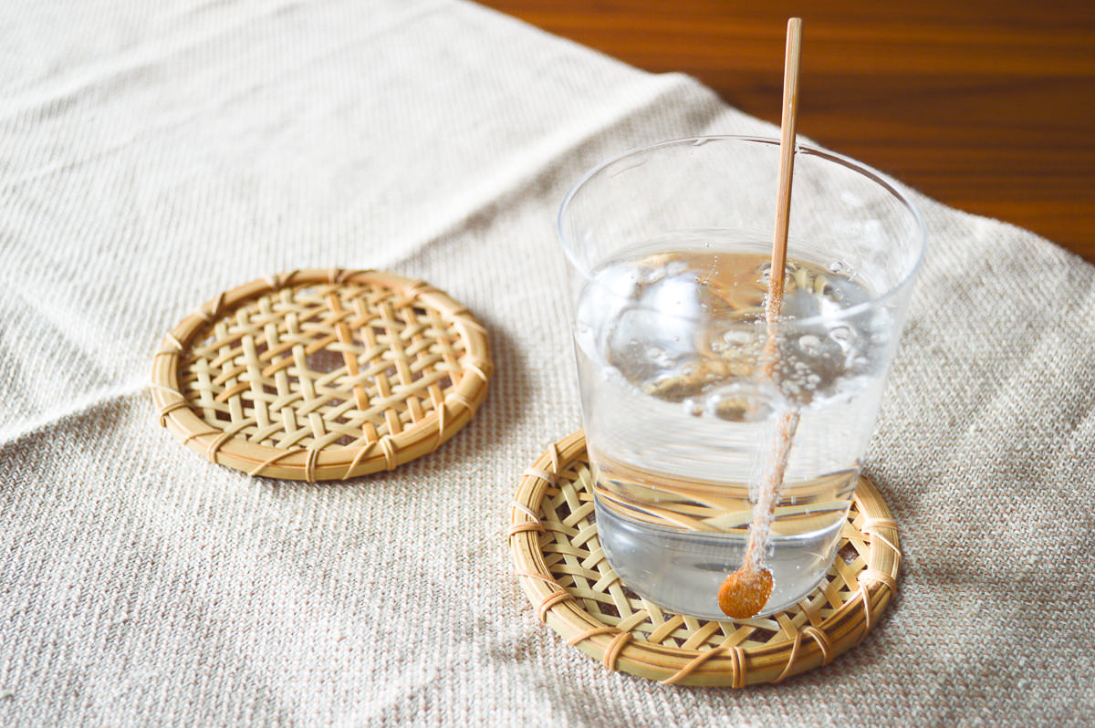 真竹よりも粘りのある「淡竹(淡竹)」で編まれたコースターをご紹介します。