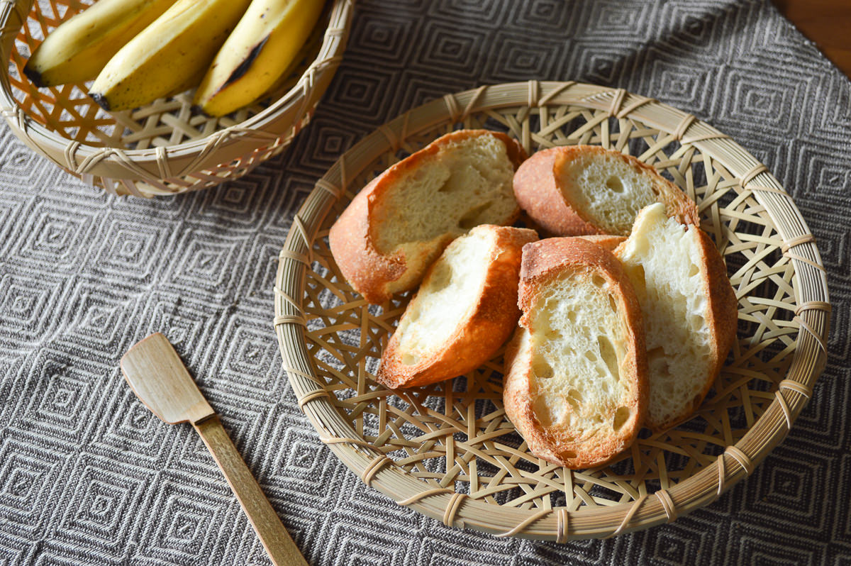 こちらは白竹と青竹を使って作られた盛り皿です。