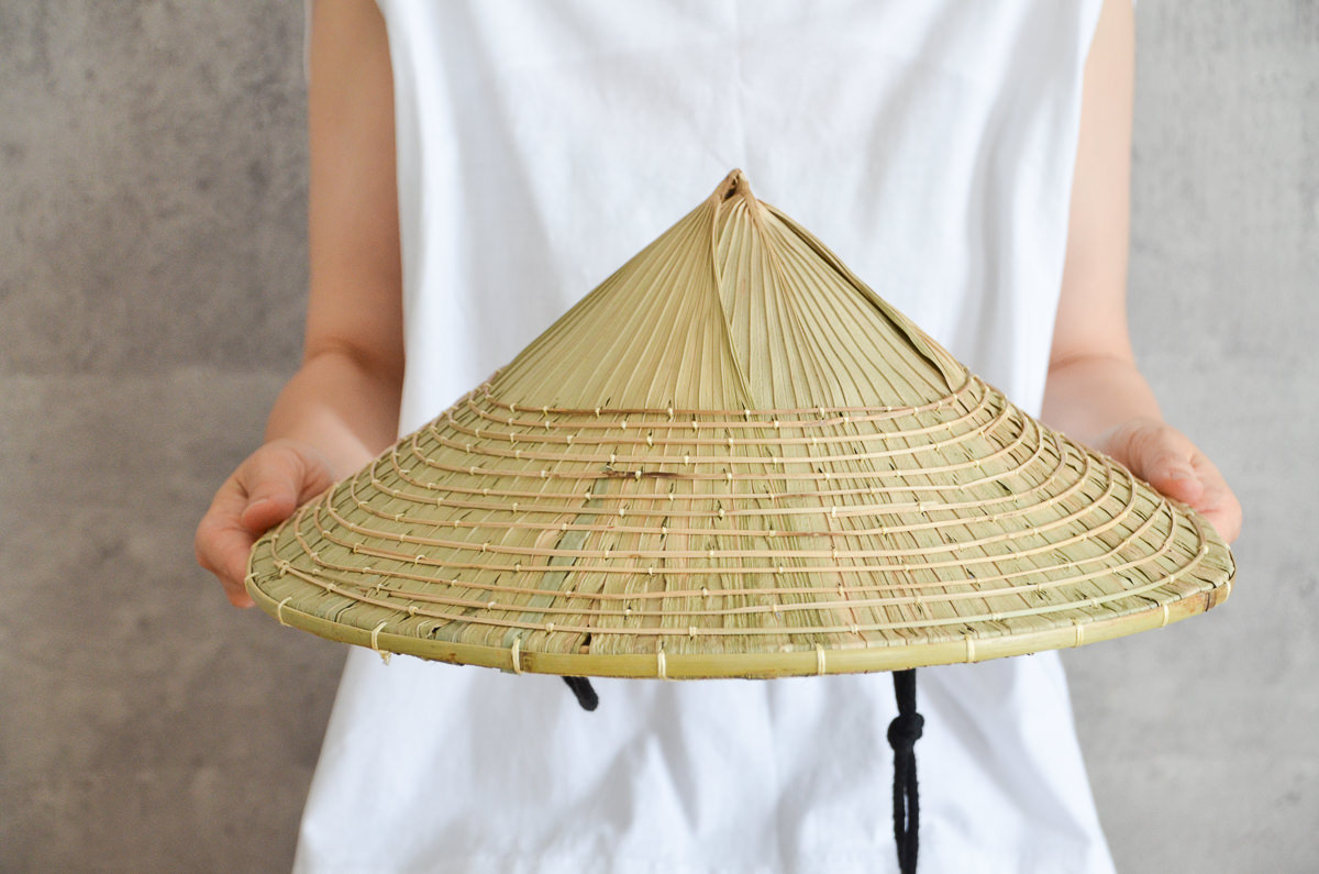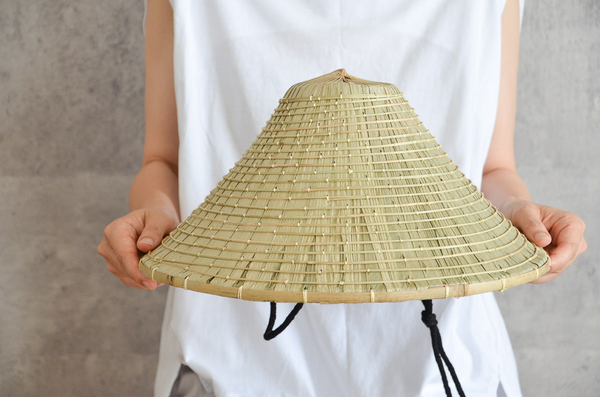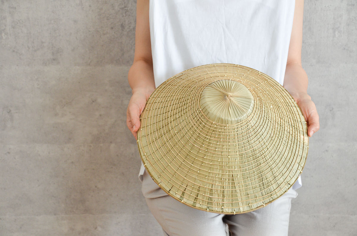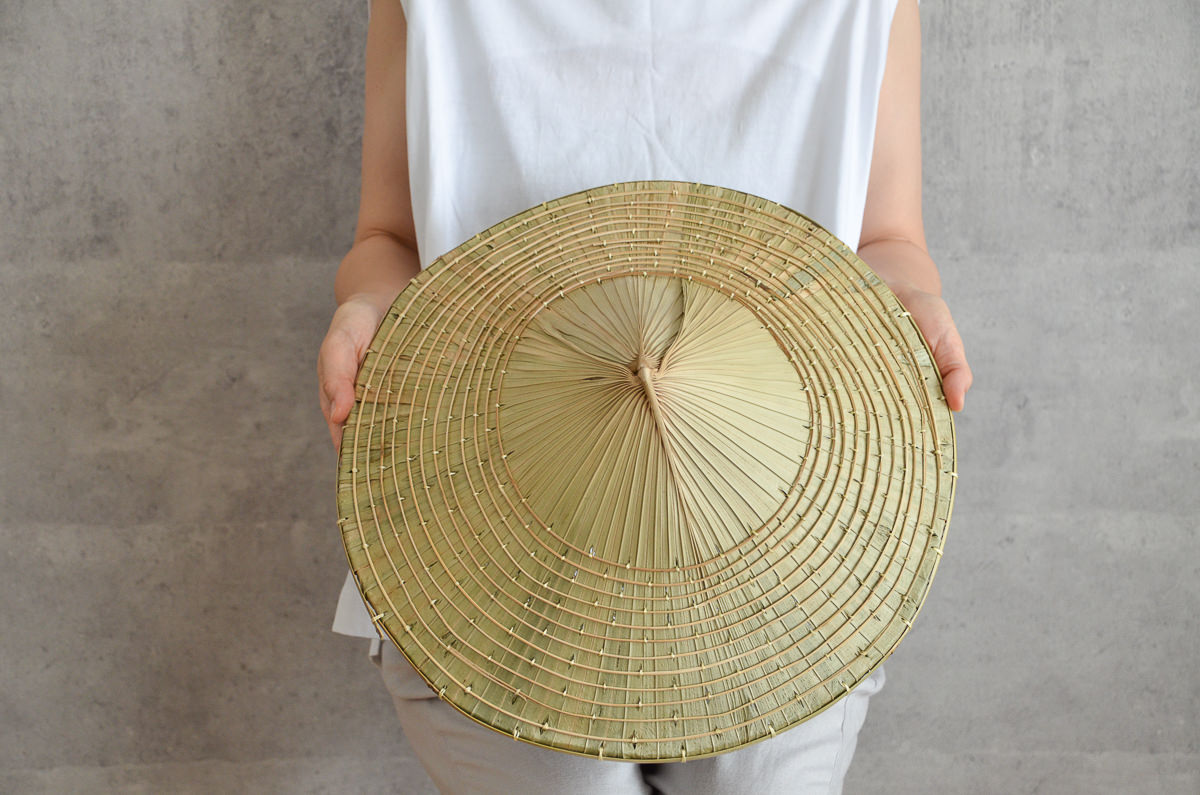 こちらは「海人(うみんちゅ)」用。地元では、漁師さんがよく使われてきたタイプのものです。特徴としては、笠の頂点が平面になっており、畑人タイプよりも傾斜が急になった作りです。