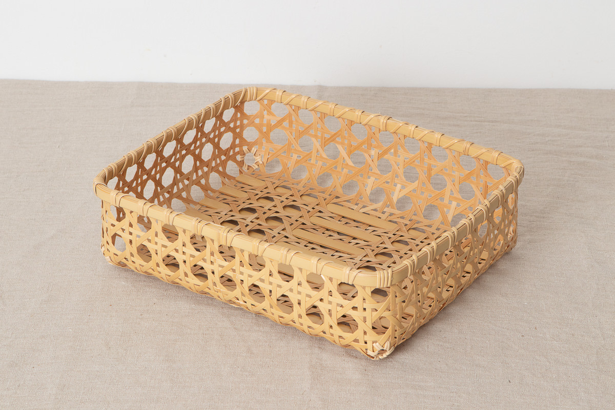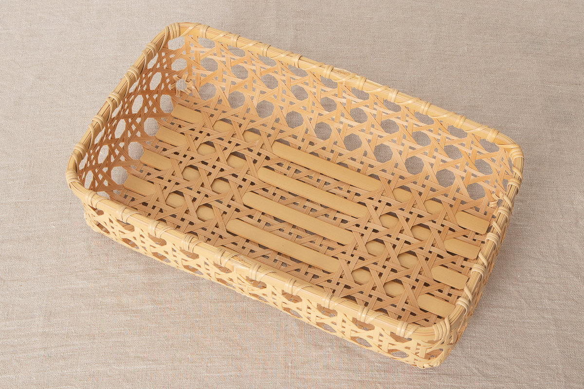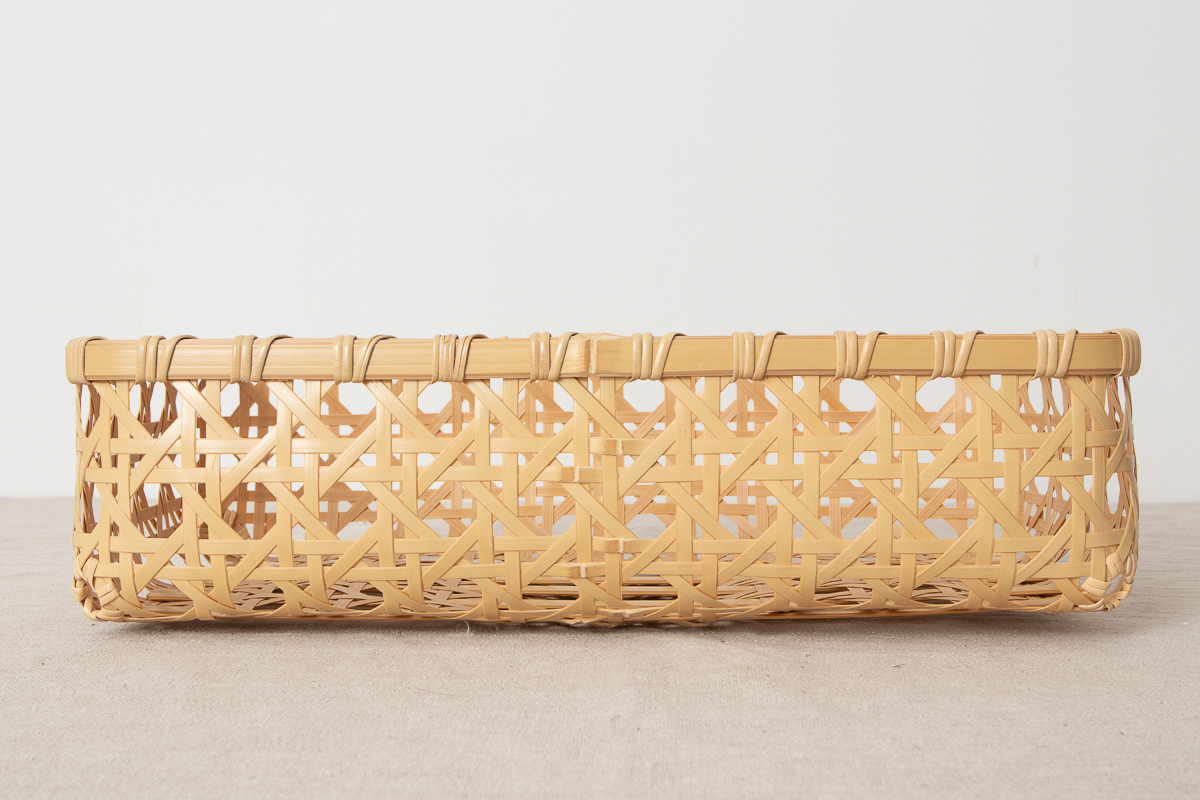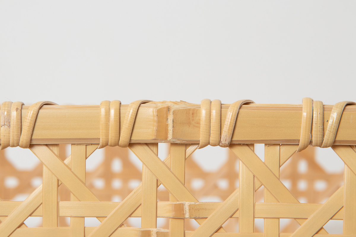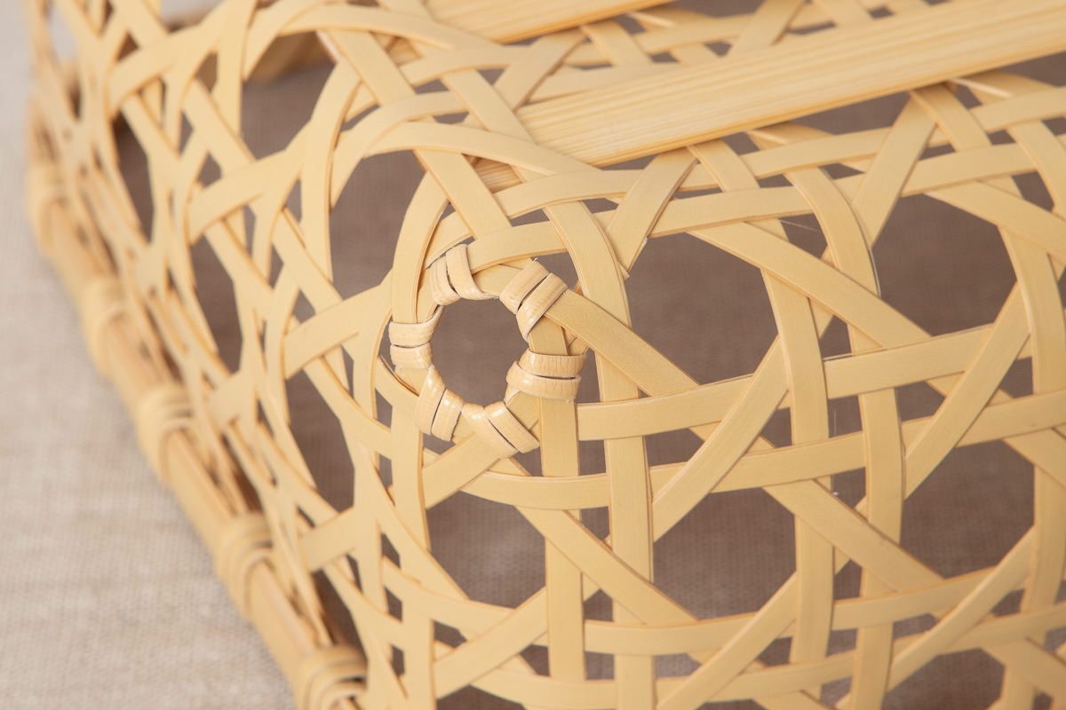 かご全体は八つ目編みという編み方できっちりと編まれています。