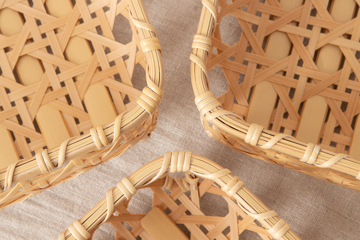 その白竹を使って作られたかごを3種類ご紹介します。