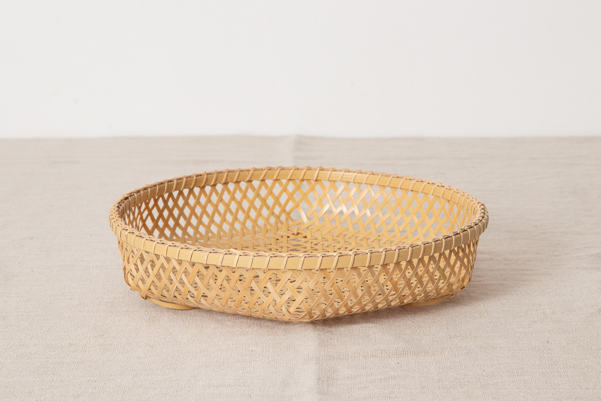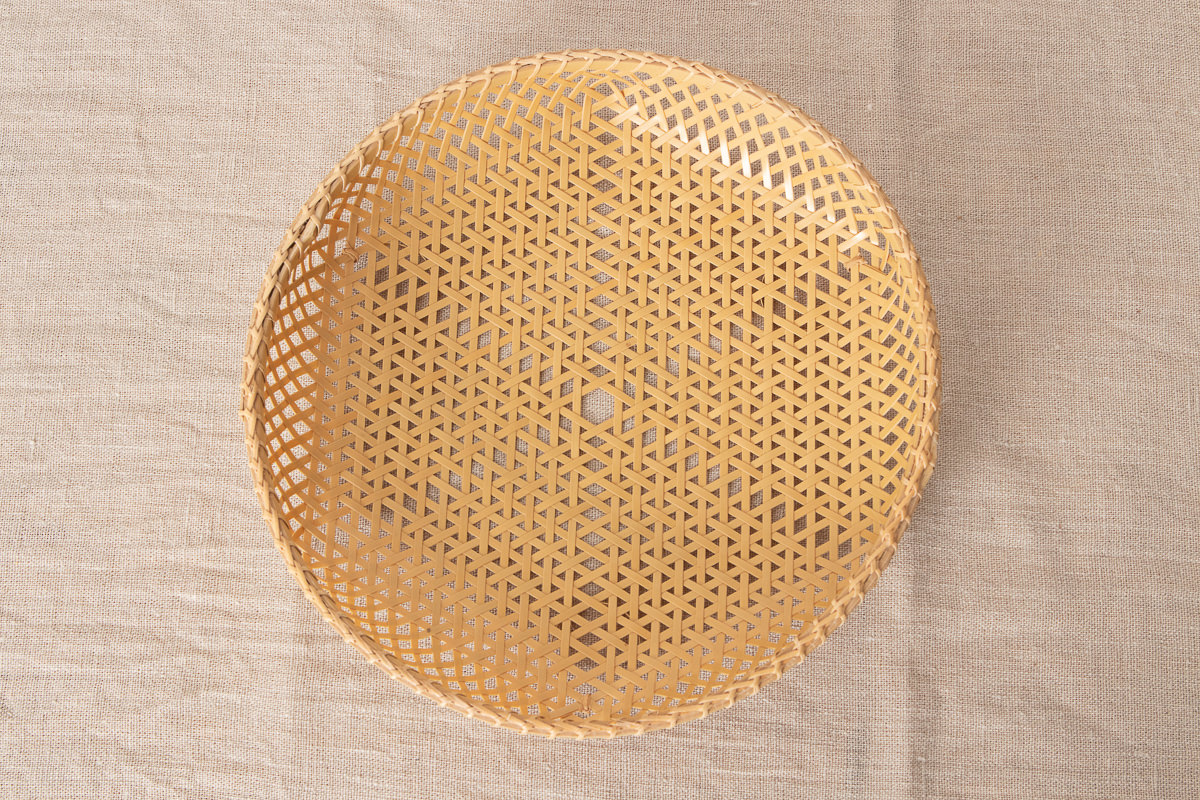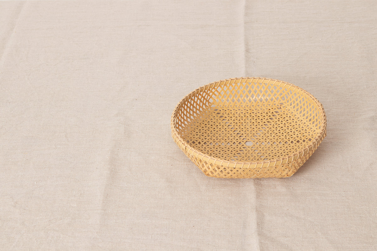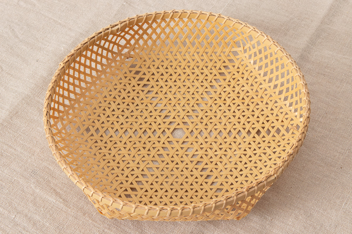 こちらは白竹を使って編まれた盛りかごです。