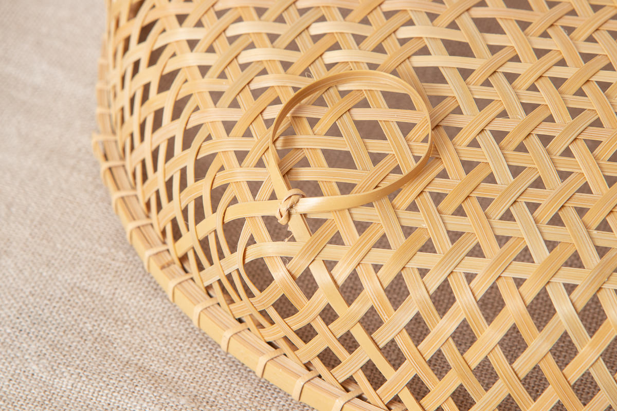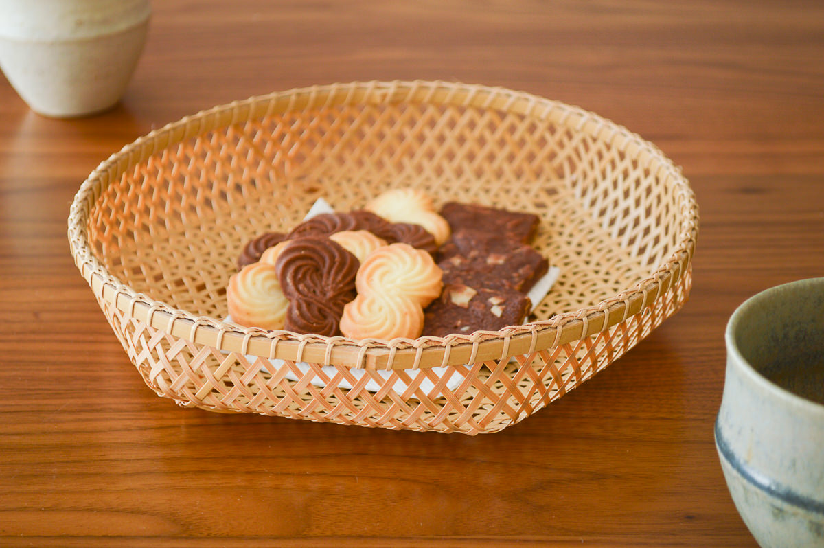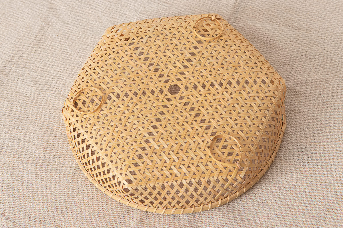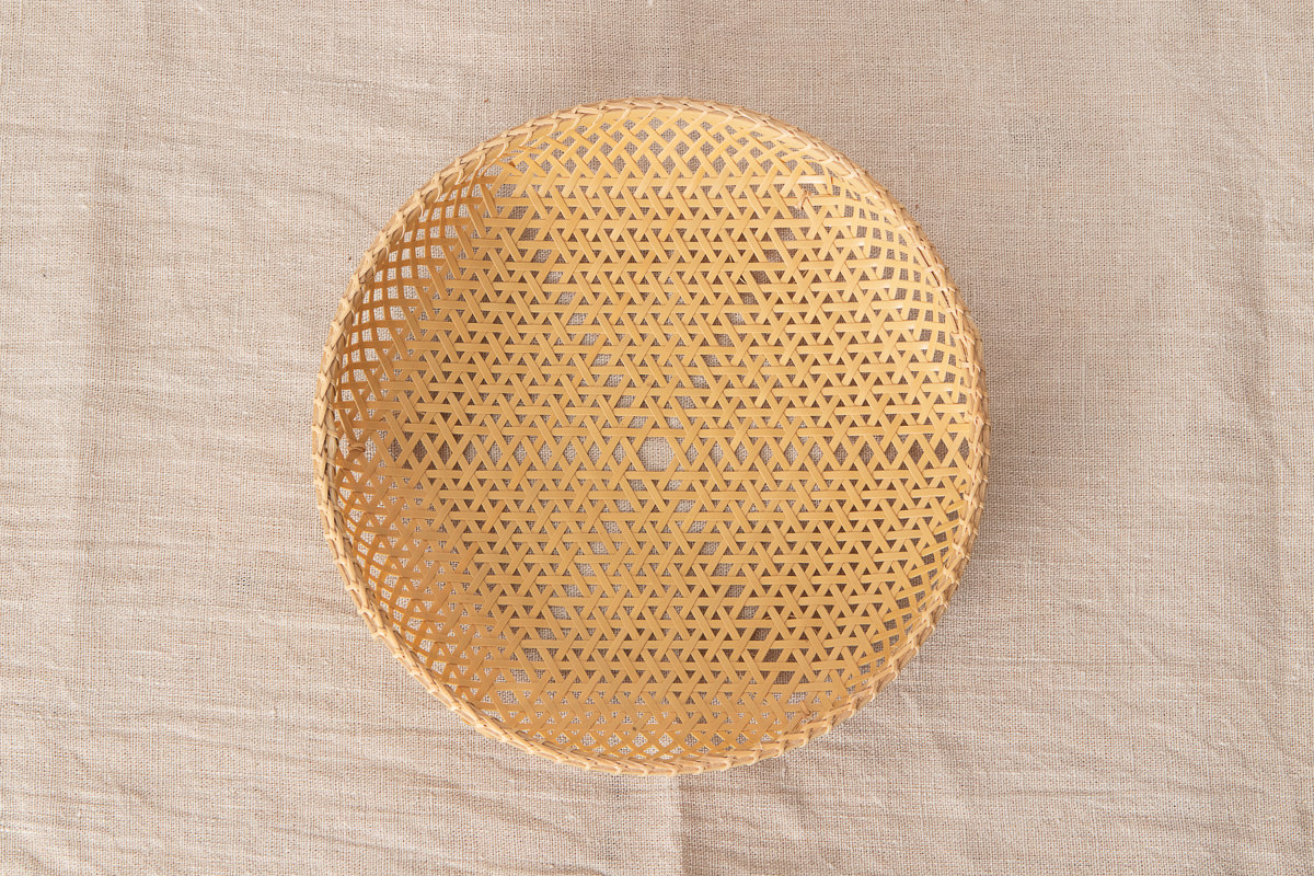 こちらは白竹を使って編まれた盛りかごです。