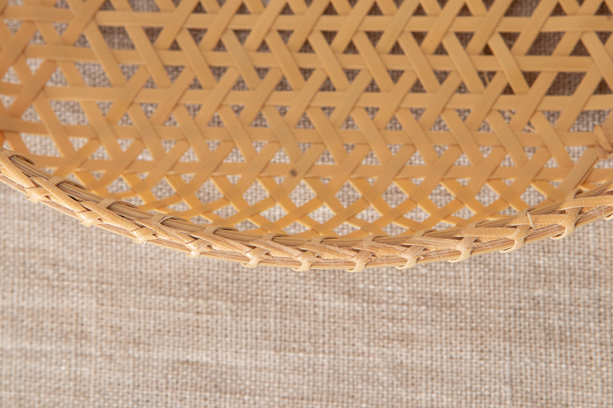 かごの底裏面です。表面と同じ、麻の葉編みの模様が浮かび上がっています。