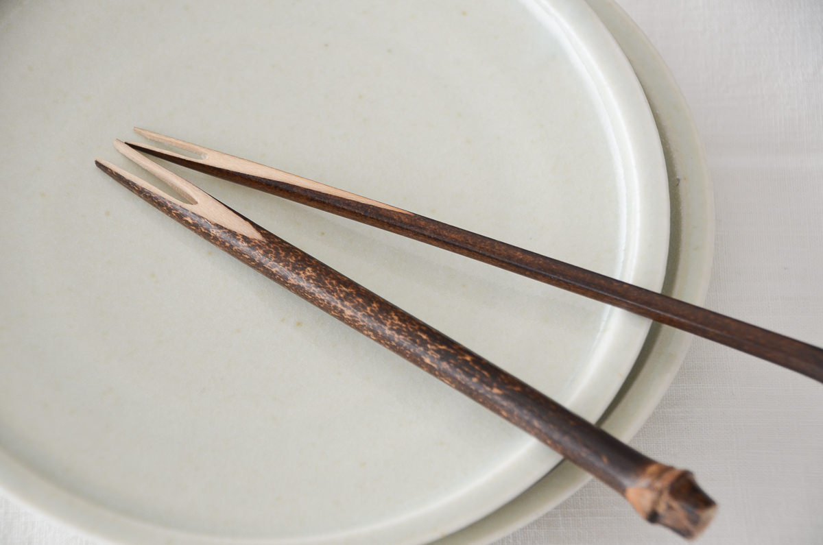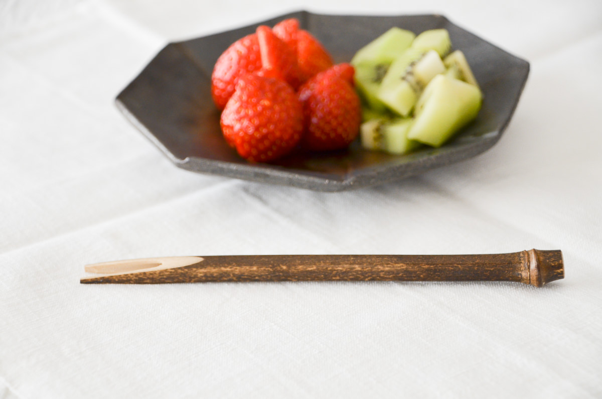 こっくりとした味わいのある、黒竹のフォーク。