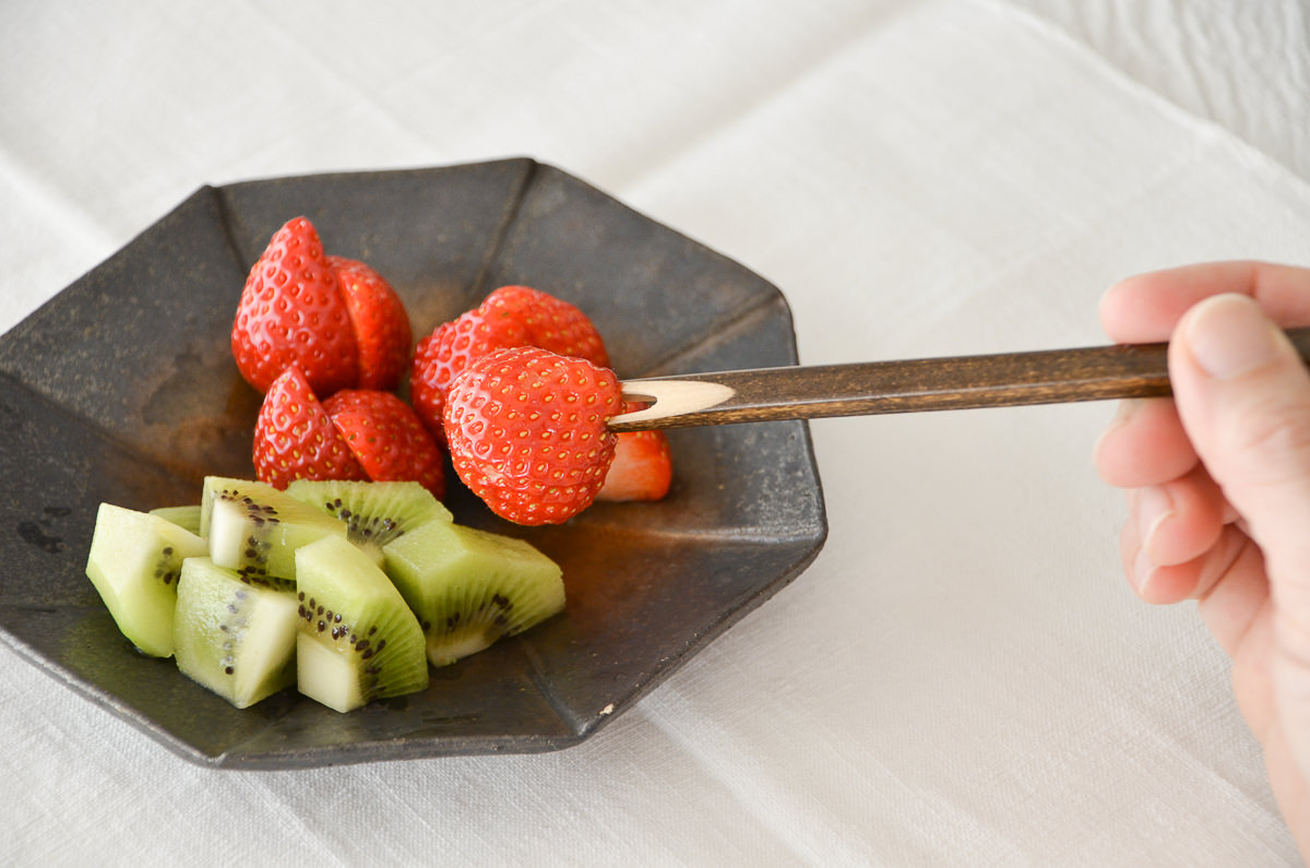 わりと柄の長いこちらのフォーク。ピックのように、スイーツや果物を召し上がるのに良いと思います。
