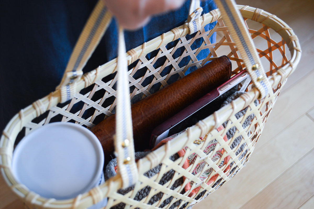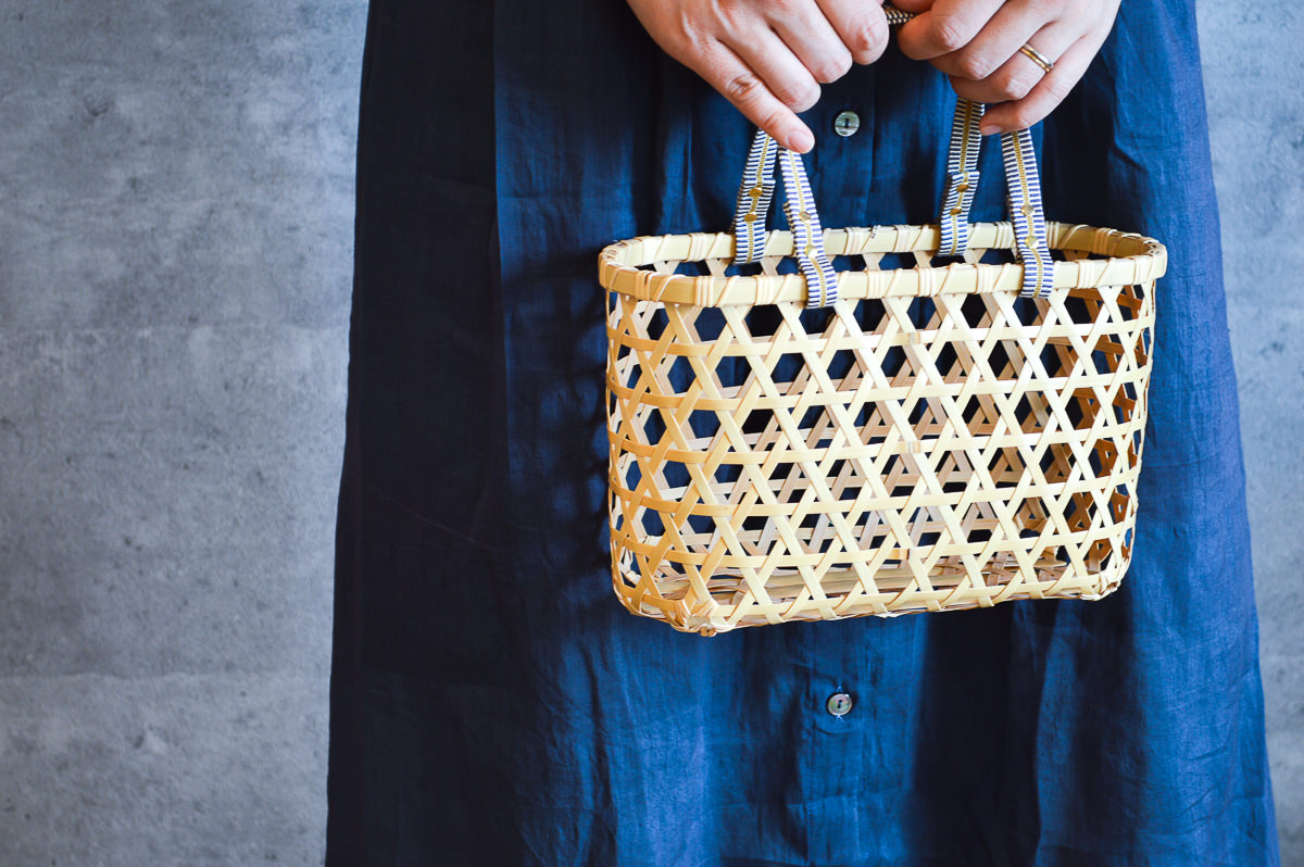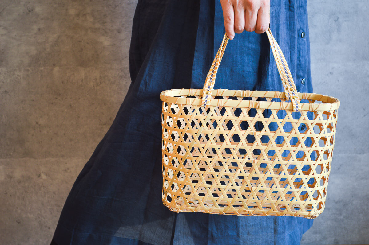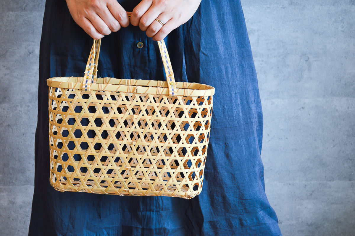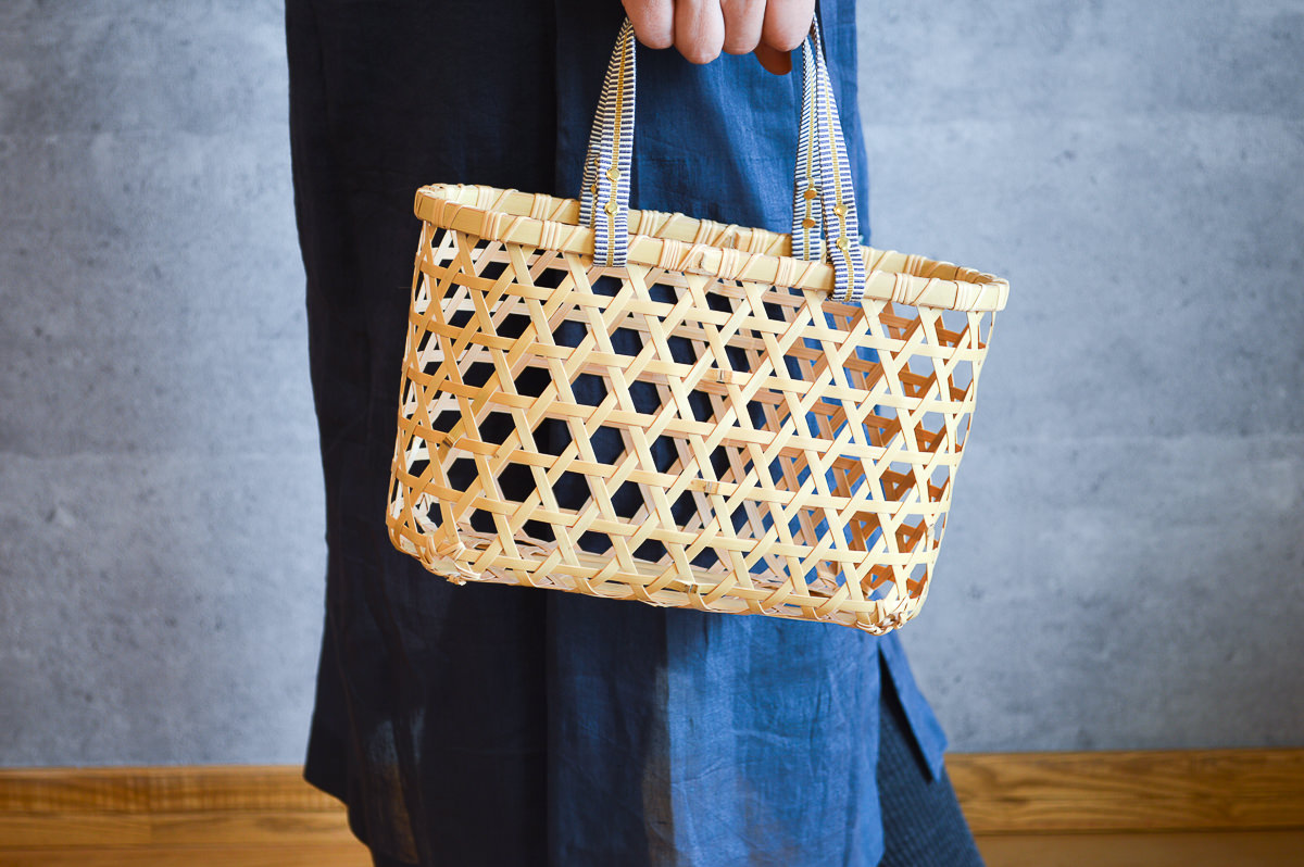 白竹のさっぱりとした色味と端正な容姿の手提げは、