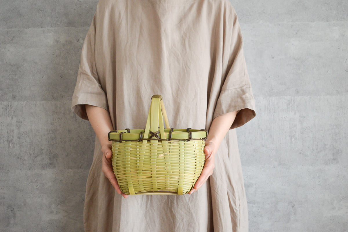 その豊かなバリエーションを持つ青竹の籠は、青い竹が飴色に変わっていく経年変化も楽しめます。