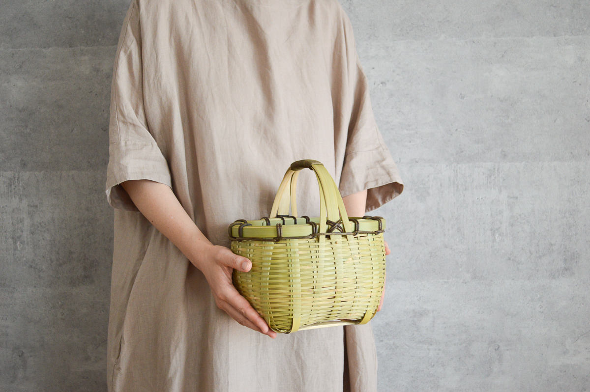 こちらは青竹とツヅラフジで作られた「ハンドバスケット ミニ」と名付けられたかごです。