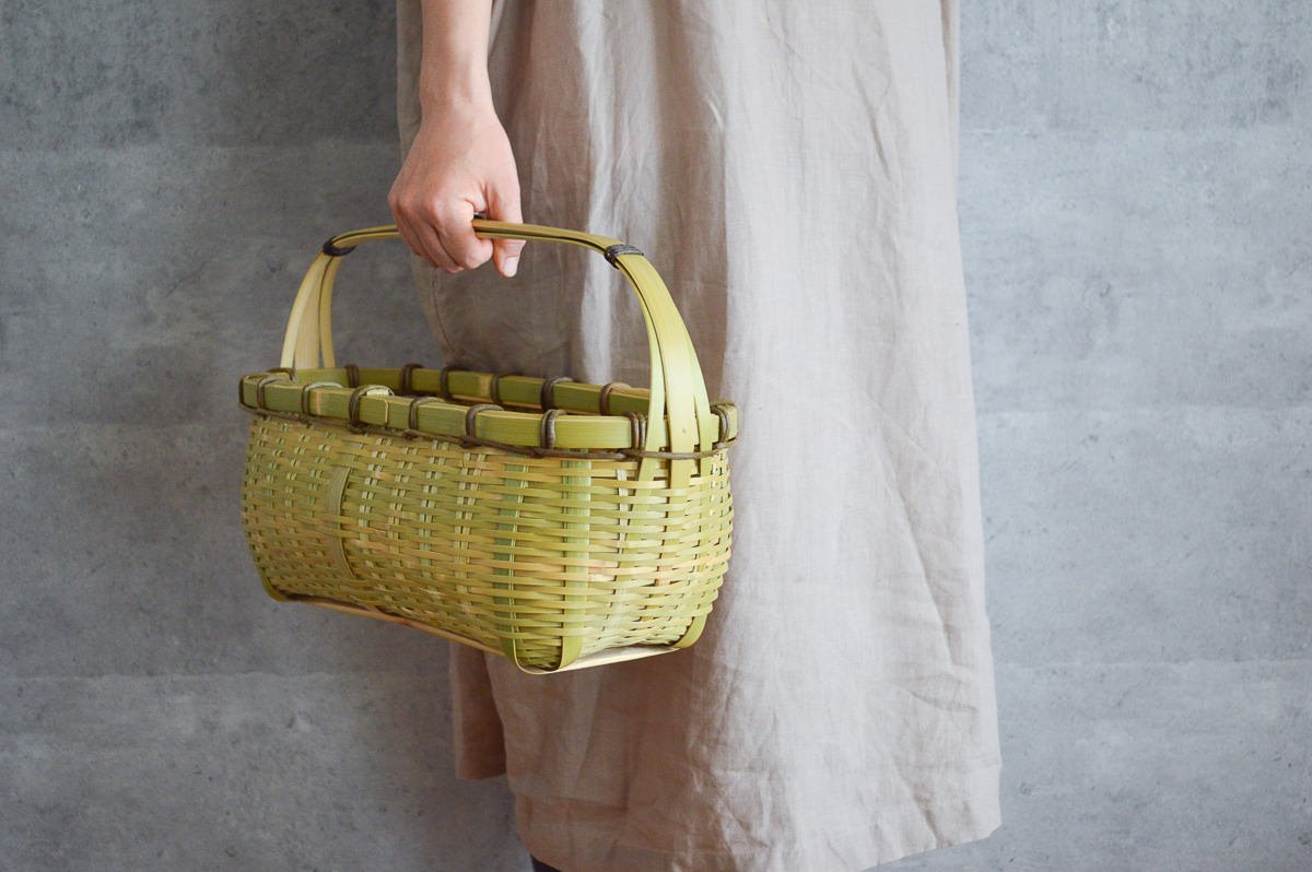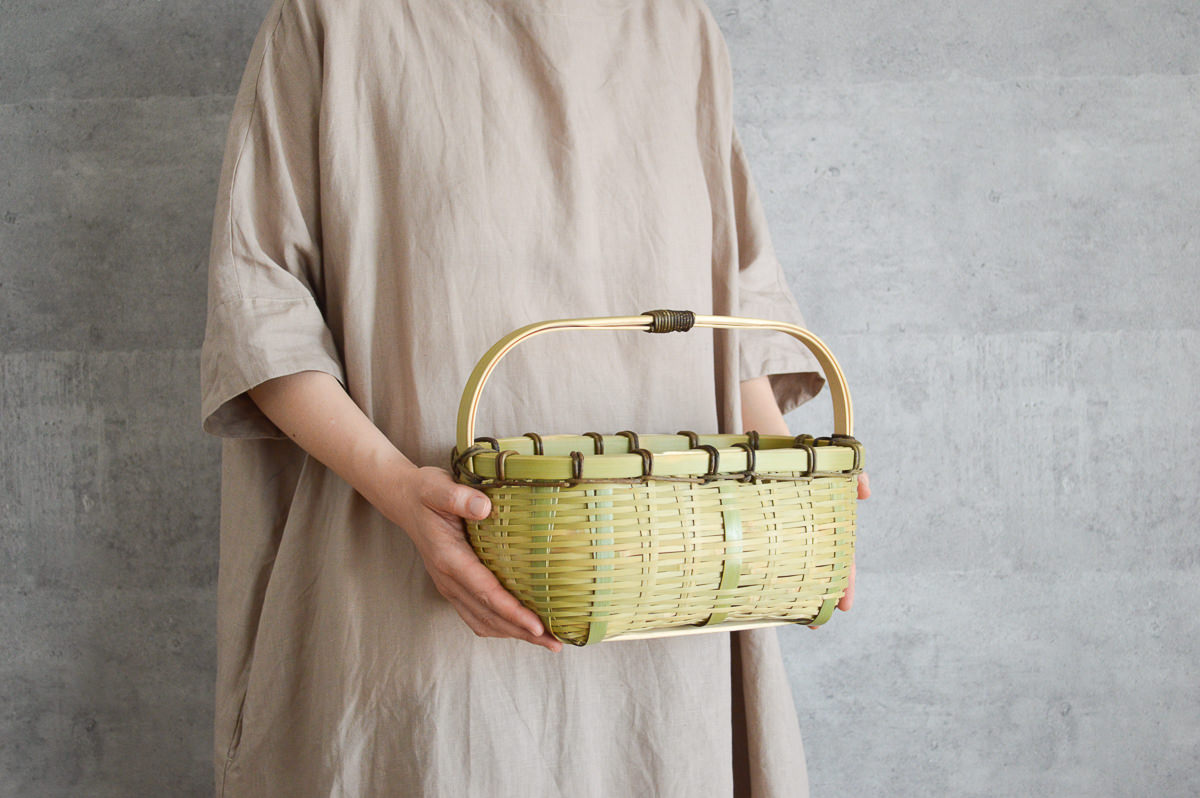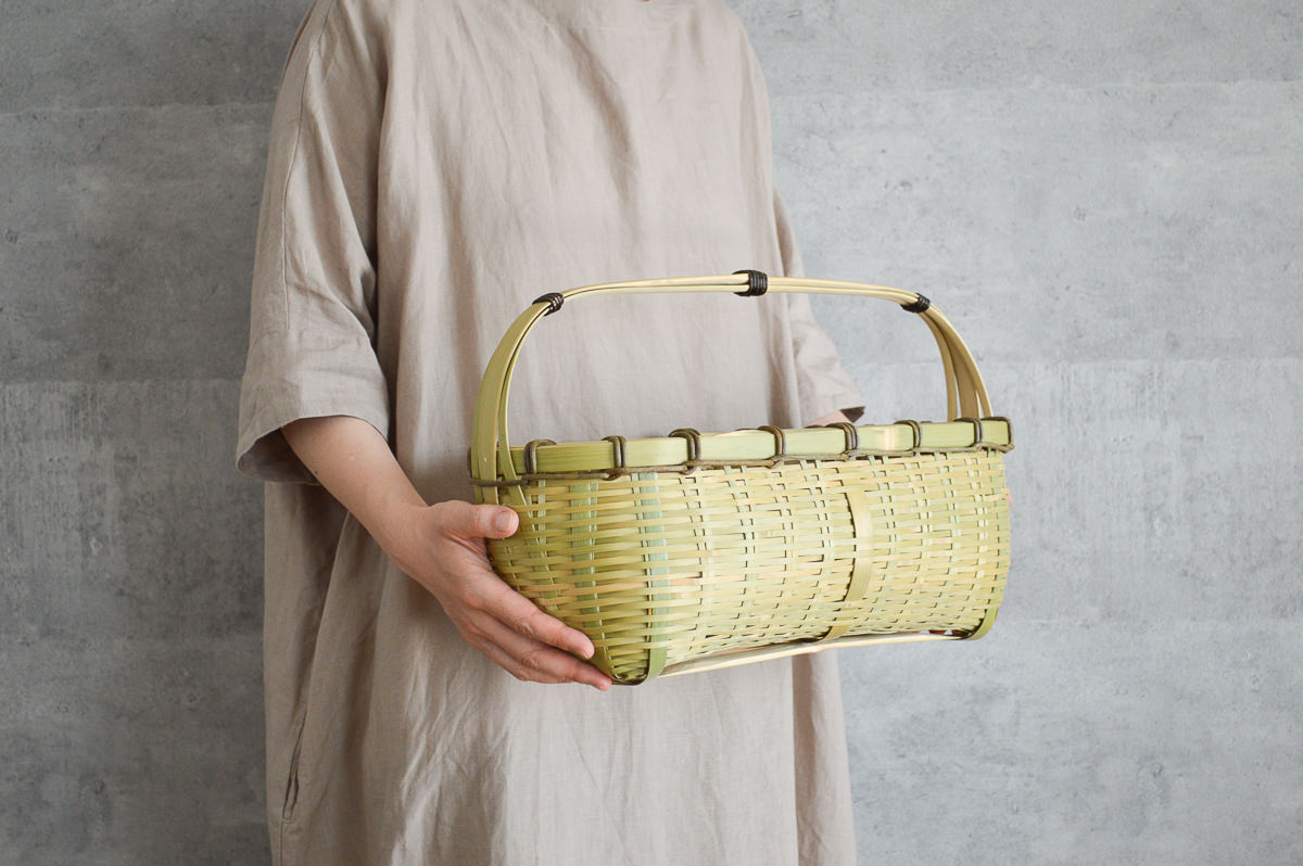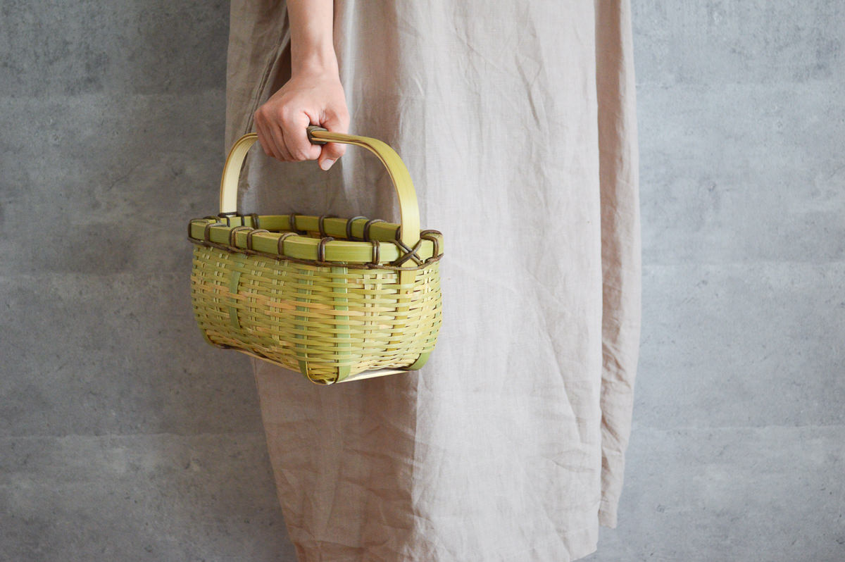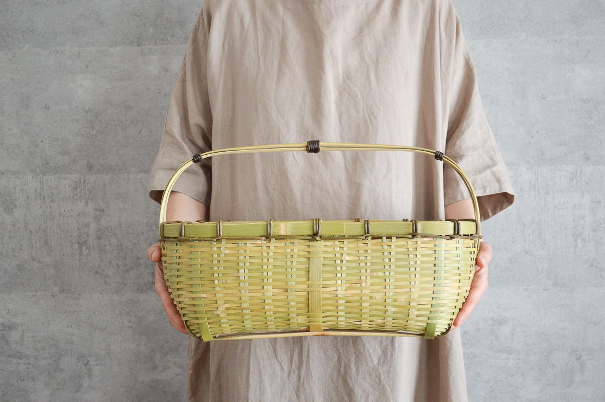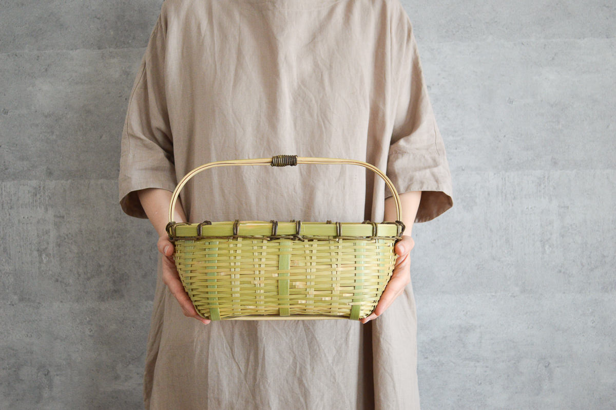 その豊かなバリエーションを持つ青竹の籠は、青い竹が飴色に変わっていく経年変化も楽しめます。
