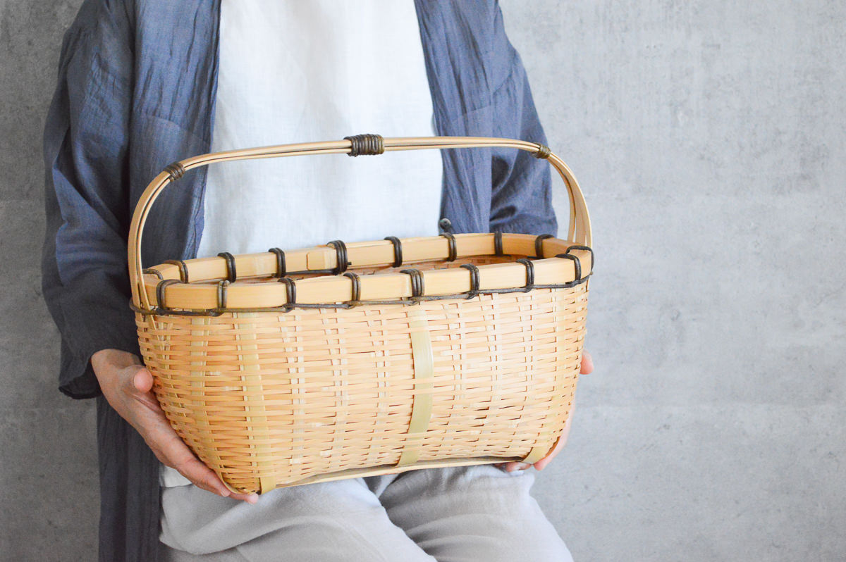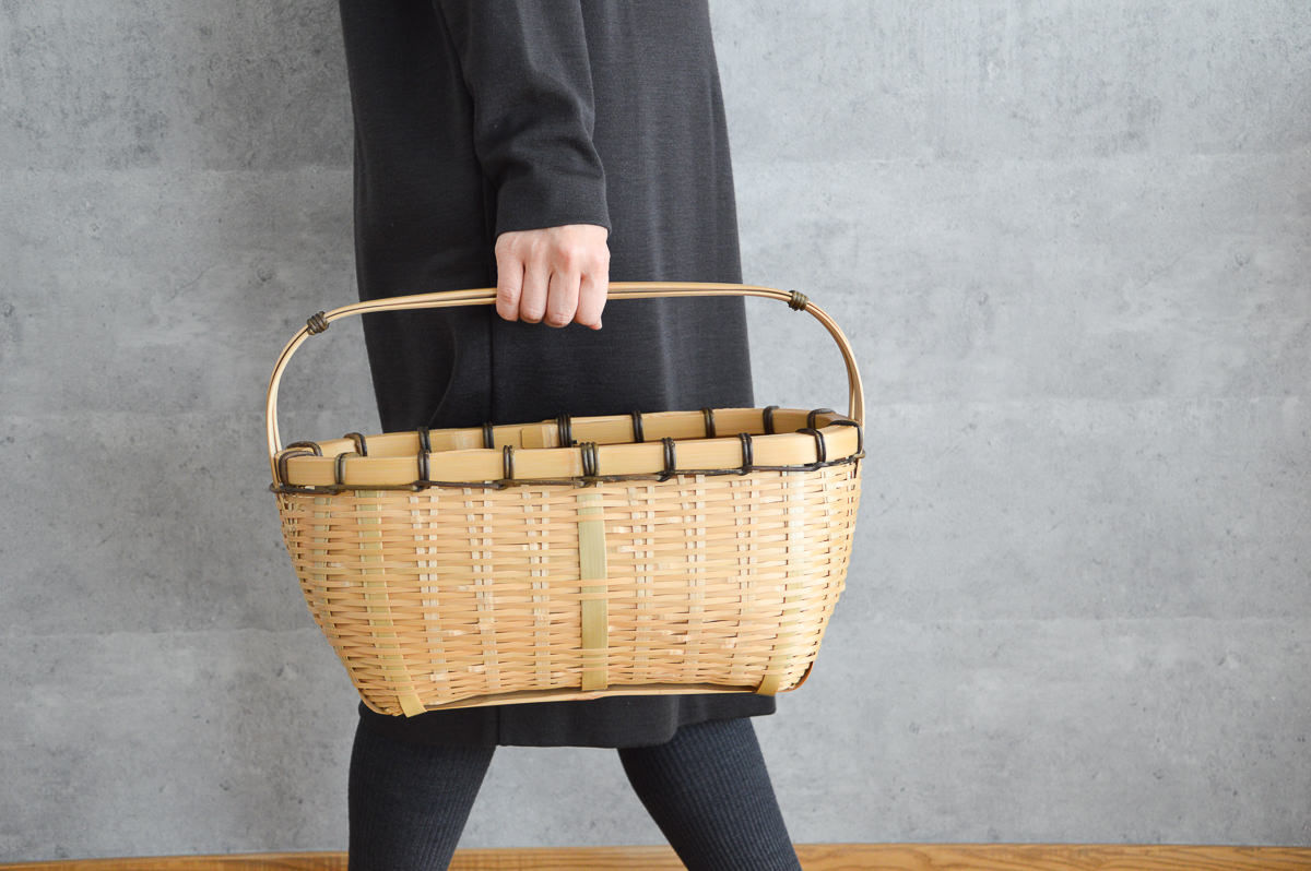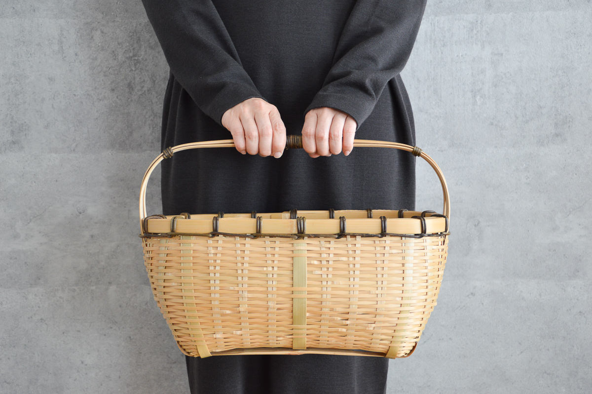 その豊かなバリエーションを持つ青竹の籠は、青い竹が飴色に変わっていく経年変化も楽しめます。