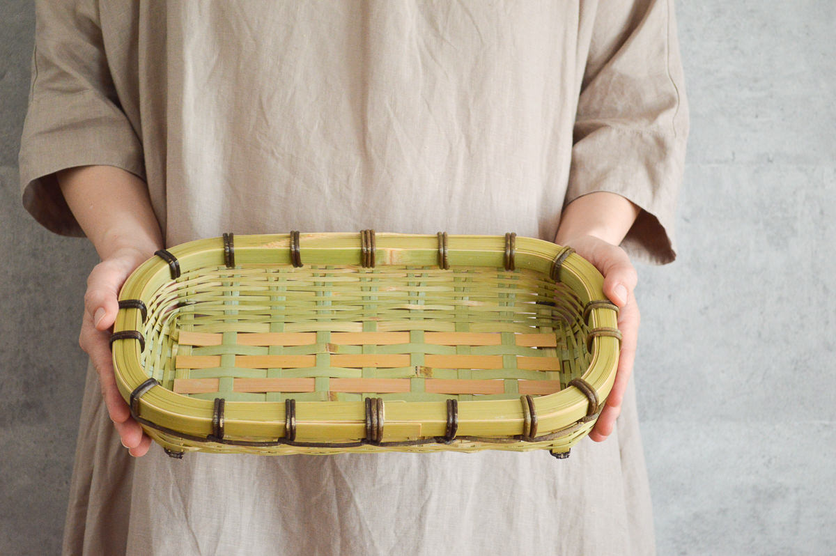 その豊かなバリエーションを持つ青竹の籠は、青い竹が飴色に変わっていく経年変化も楽しめます。