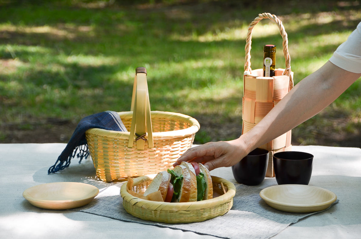 縁部分はみがいた竹ひごを巻いて仕上げる、「巻縁(まきぶち)仕上げ」です。蓋と身、それぞれの縁が重なっている姿も美しいです。