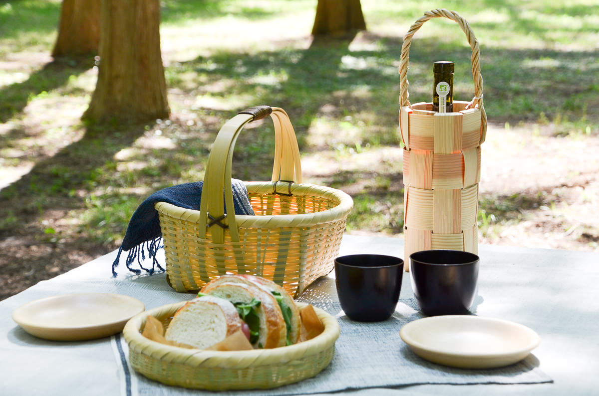 その豊かなバリエーションを持つ青竹の籠は、青い竹が飴色に変わっていく経年変化も楽しめます。