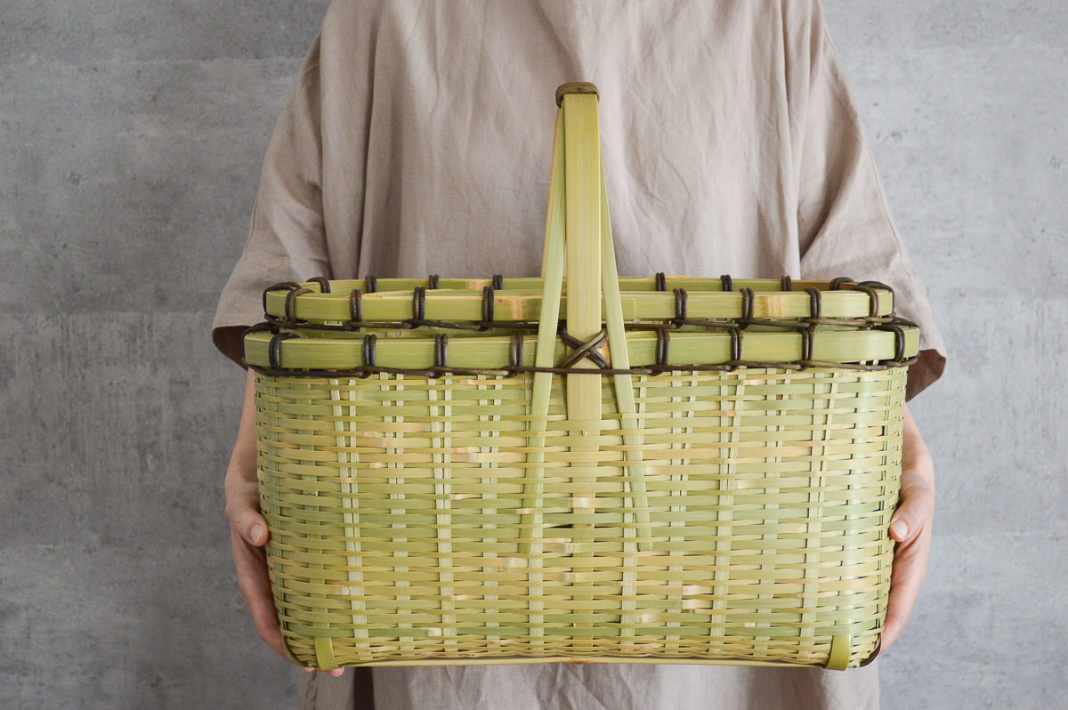 その豊かなバリエーションを持つ青竹の籠は、青い竹が飴色に変わっていく経年変化も楽しめます。