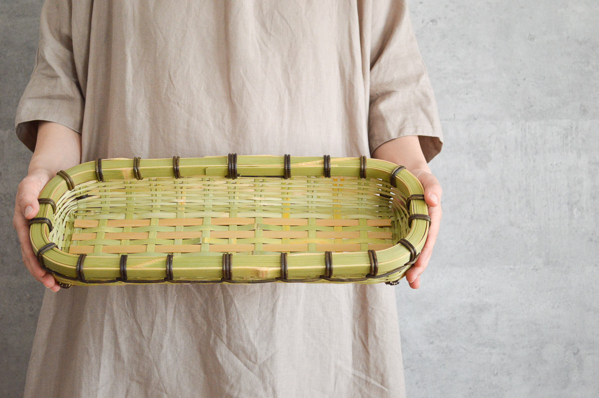 その豊かなバリエーションを持つ青竹の籠は、青い竹が飴色に変わっていく経年変化も楽しめます。