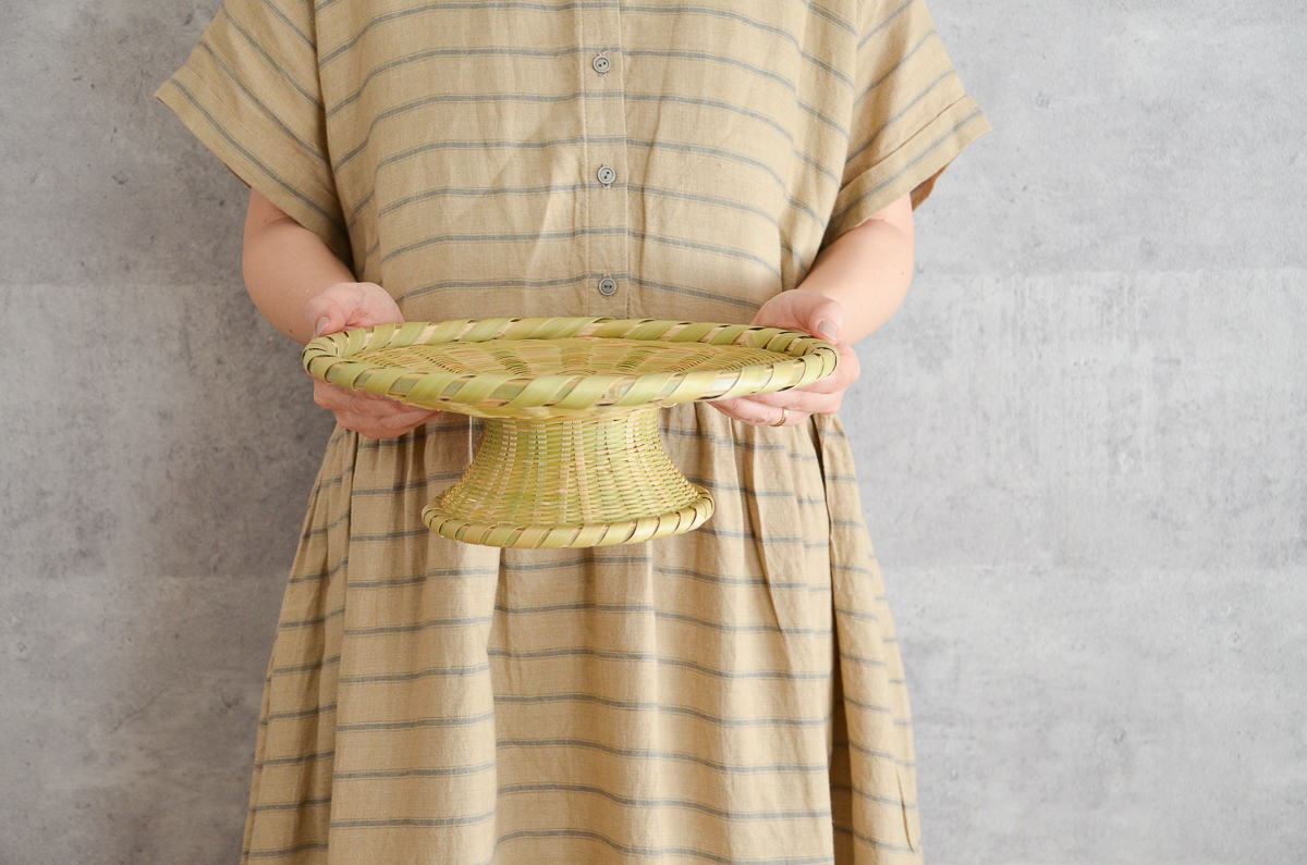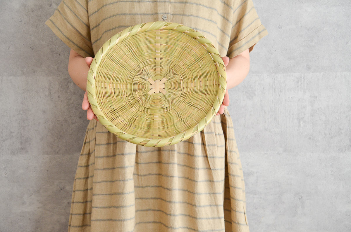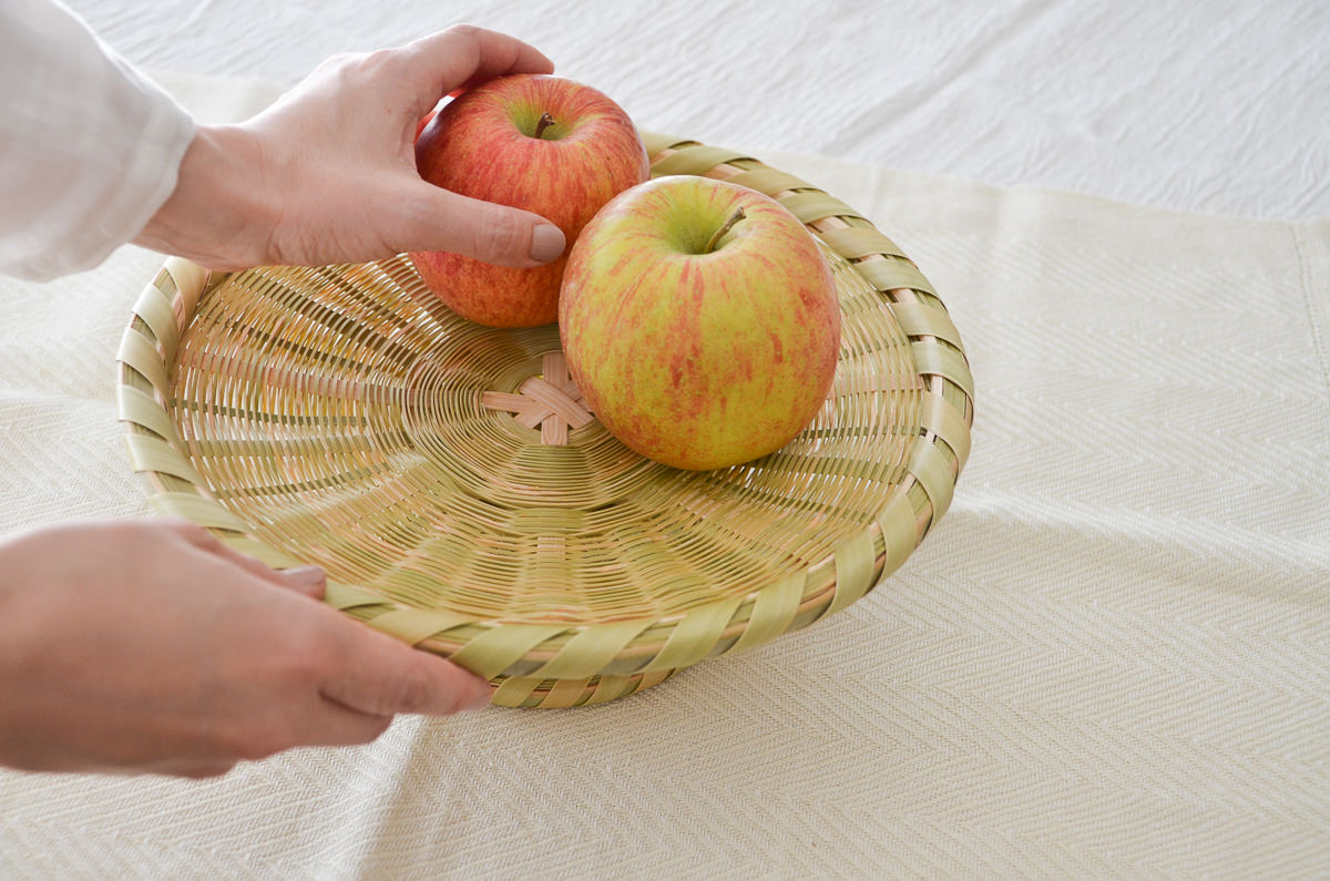 青竹に「みがき」をかけたひごで編み上げた、「コンポートバスケット」と名付けられたかごです。