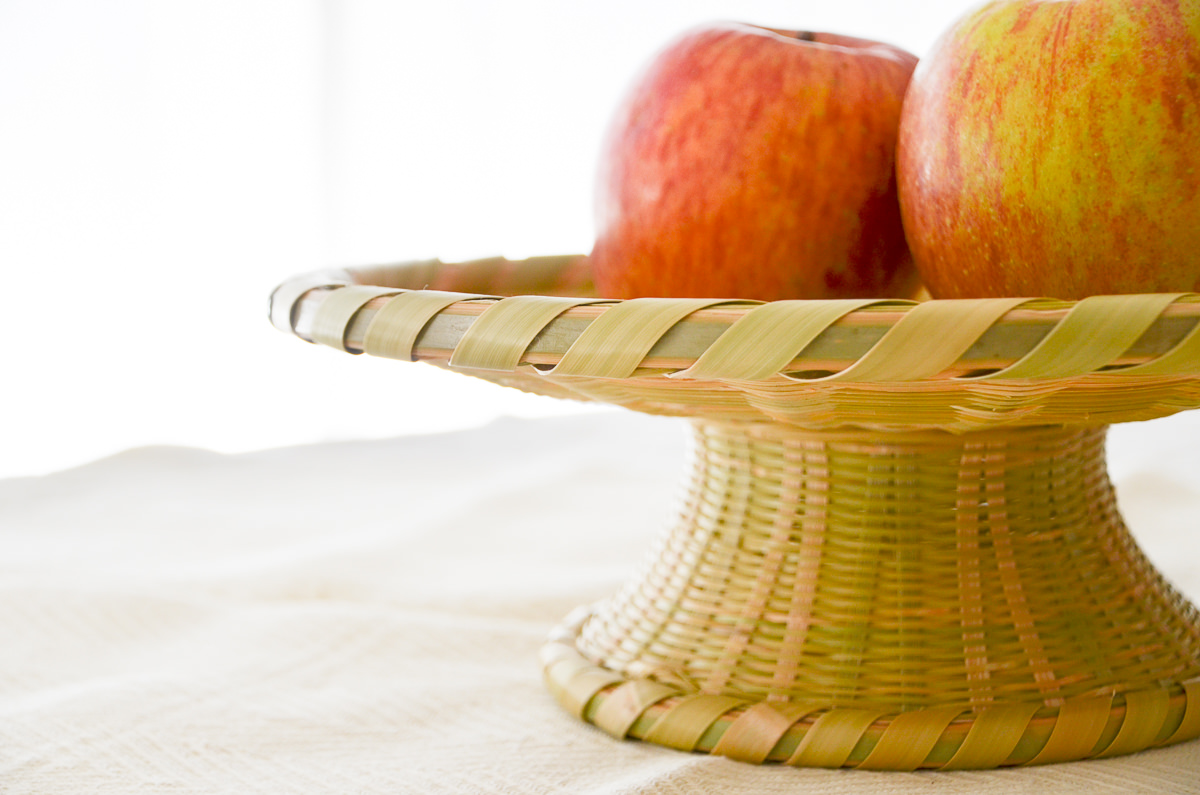 青竹に「みがき」をかけたひごで編み上げた、「コンポートバスケット」と名付けられたかごです。
