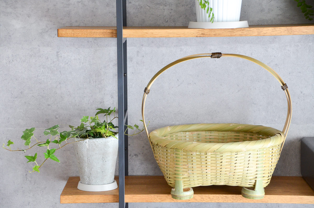 その豊かなバリエーションを持つ青竹の籠は、青い竹が飴色に変わっていく経年変化も楽しめます。