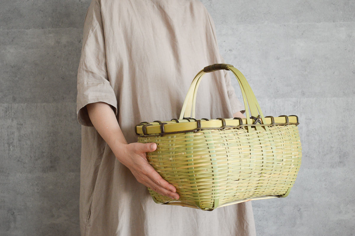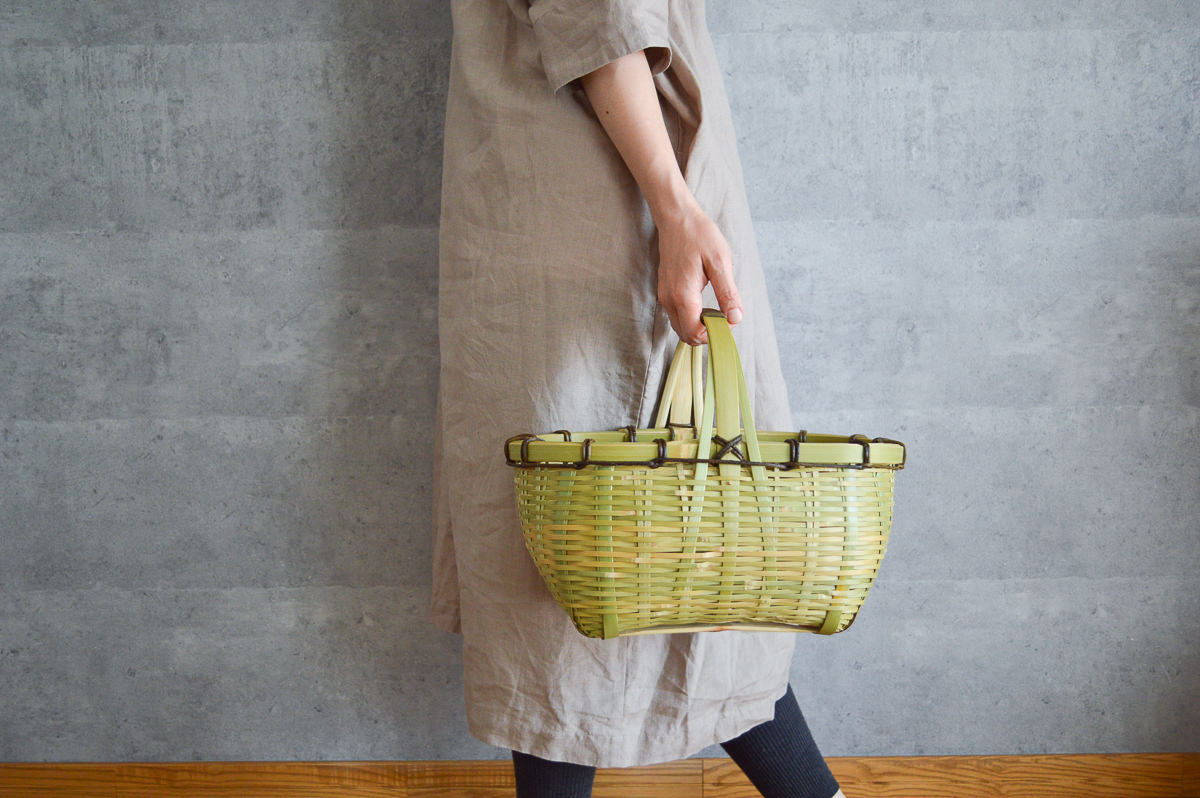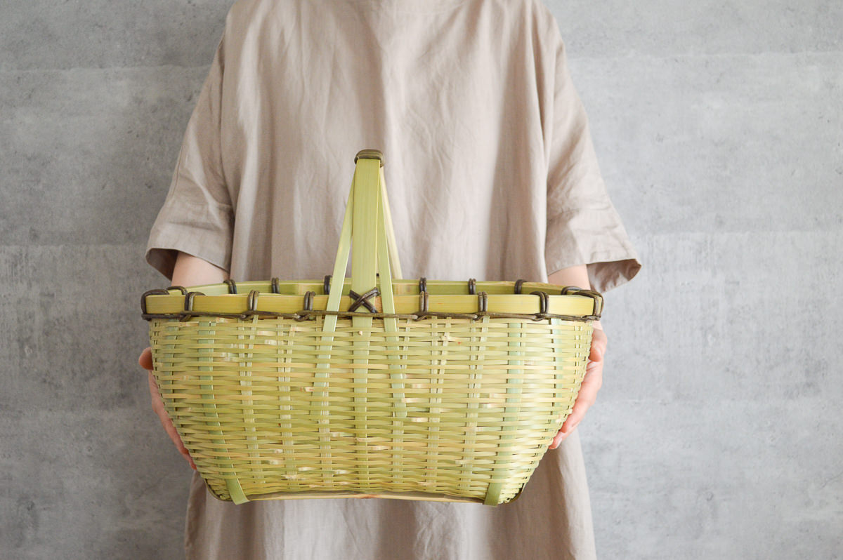その豊かなバリエーションを持つ青竹の籠は、青い竹が飴色に変わっていく経年変化も楽しめます。