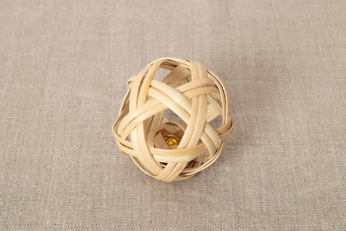 シンプルに球体を編んだもの(写真左)と、 中にもう一つ小さな球体を作り、その中に鈴が入っているもの(写真右)があります。