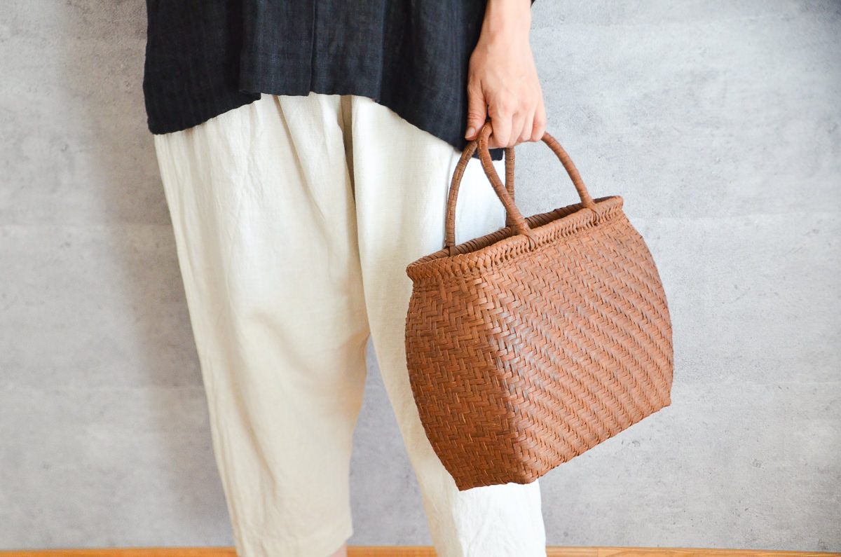 室内にいるとき、屋外で。街中で、緑の多い自然の中で。かごの置かれる環境によって、また見る角度や光が当たったときの陰影によっても、とりどりの顔を見せてくれます。