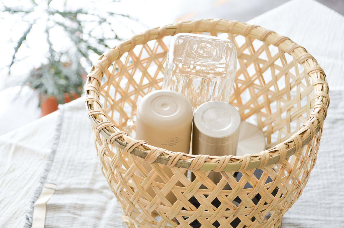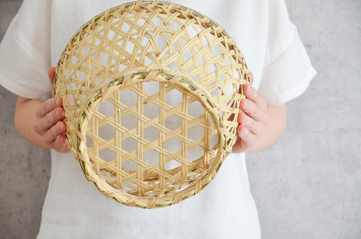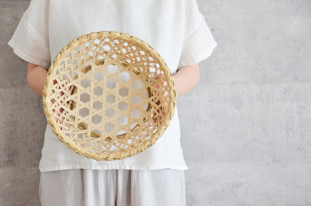 こちらはすず竹で編まれた、六つ目編みのかごです。