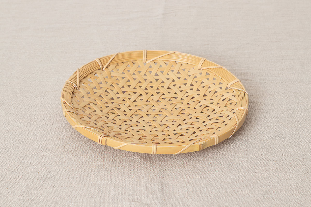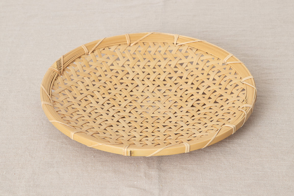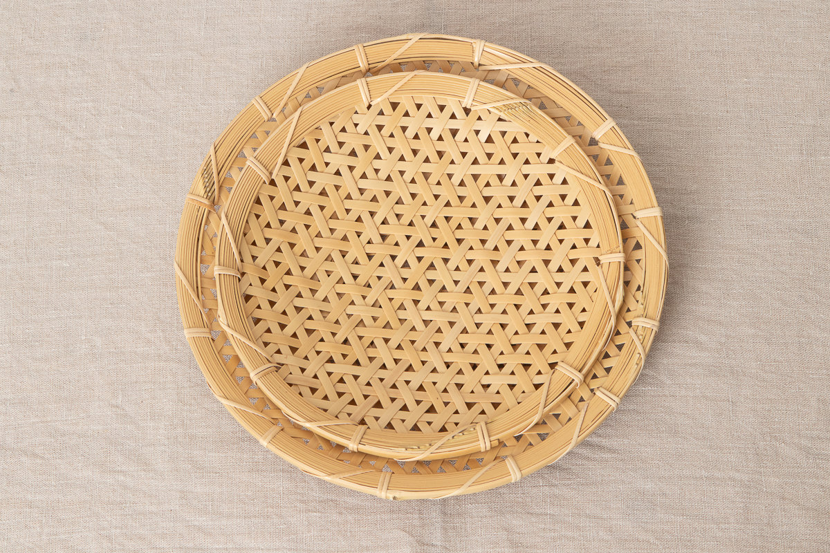 こちらはその方が作られた白竹製のざるです。直径25cm、直径30cmの2サイズがあります。