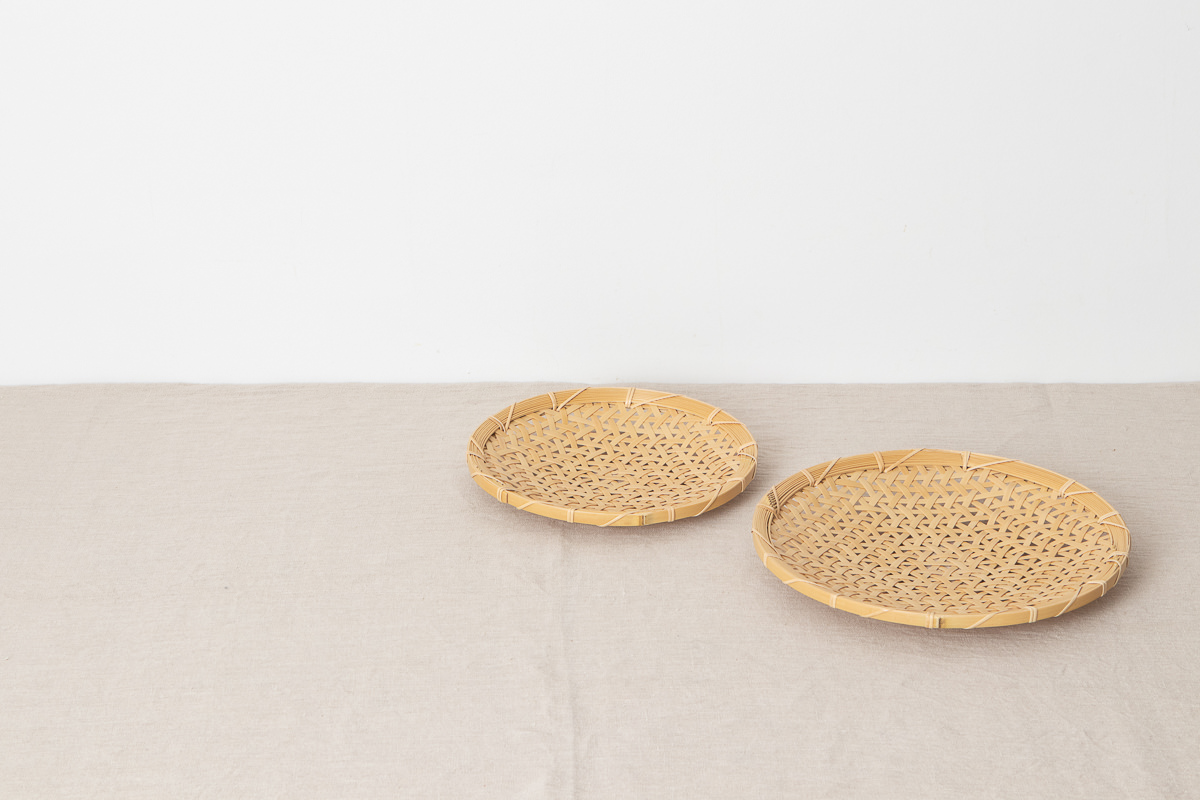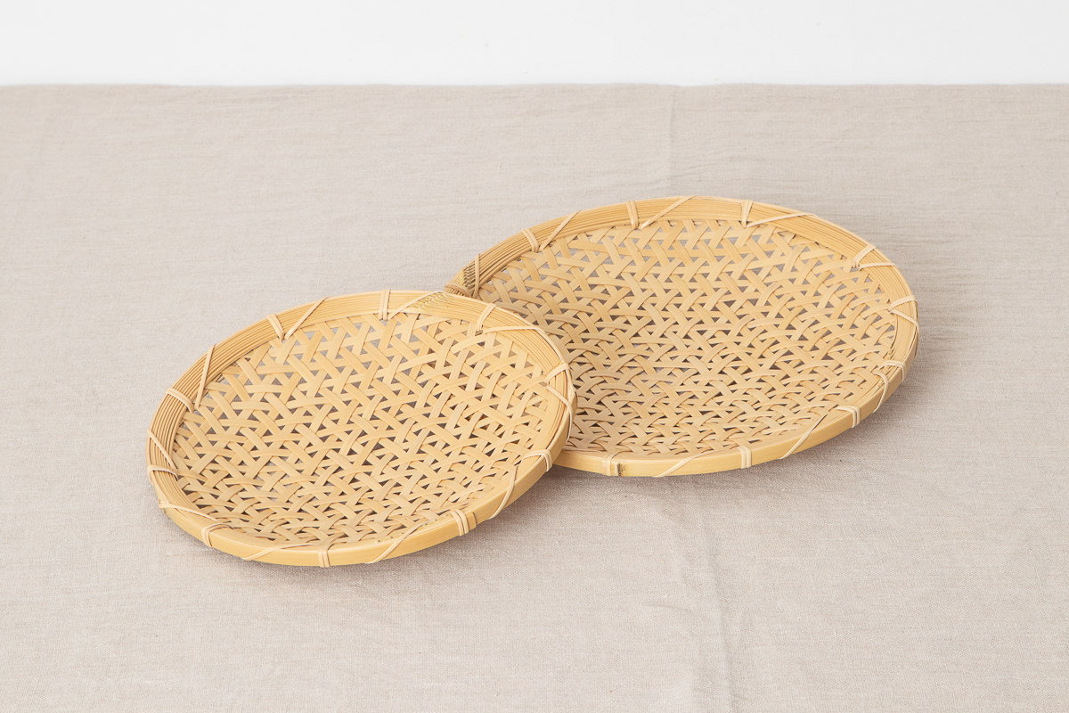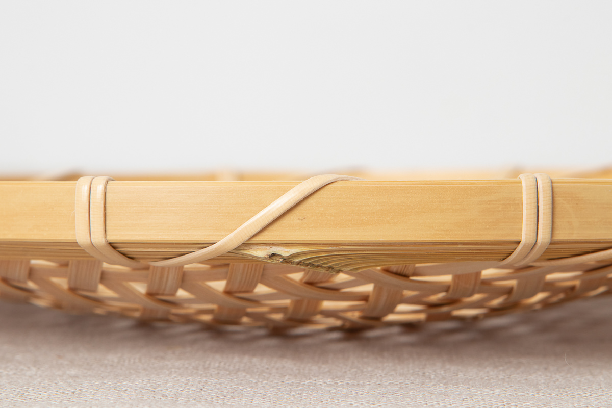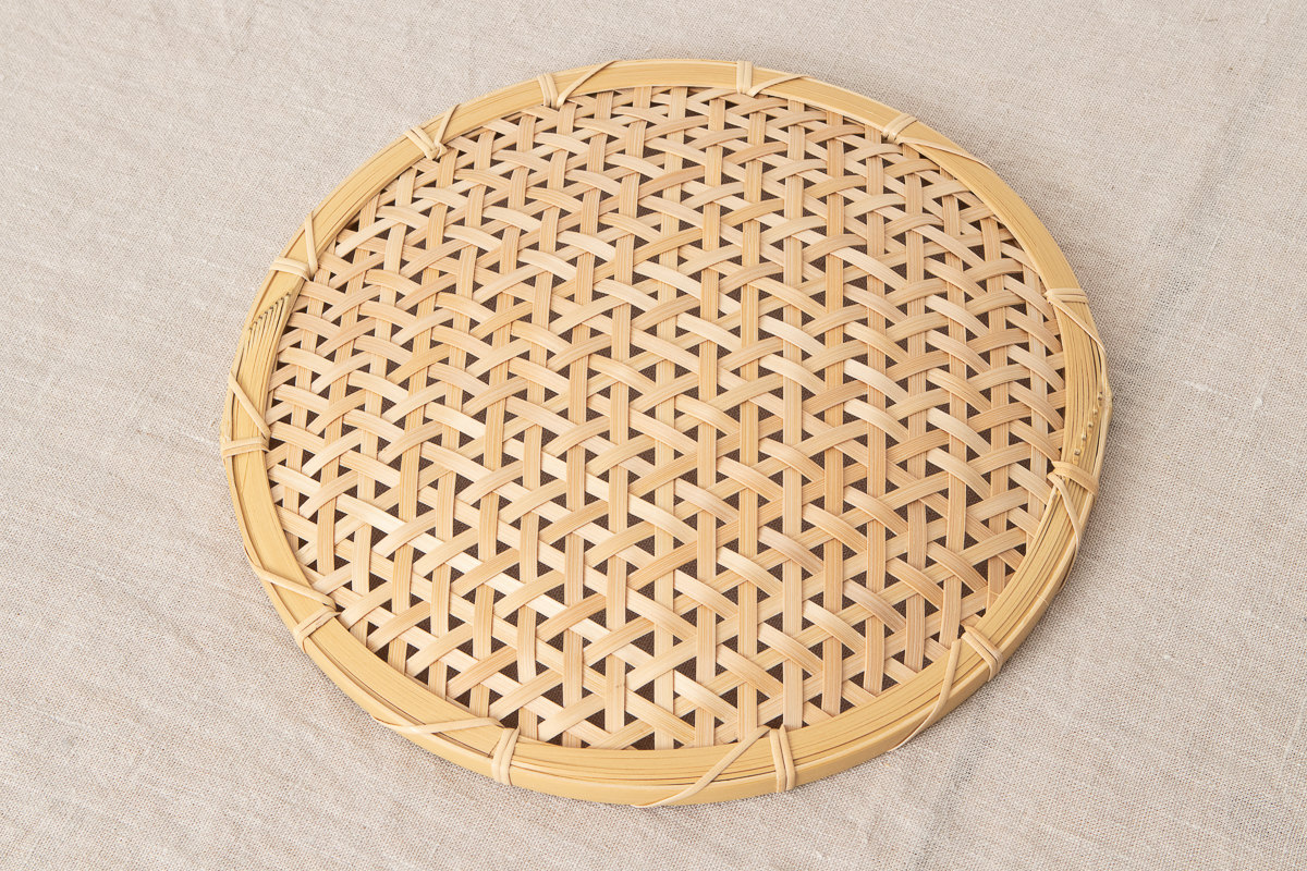 こちらはその方が作られた白竹製のざるです。直径25cm、直径30cmの2サイズがあります。