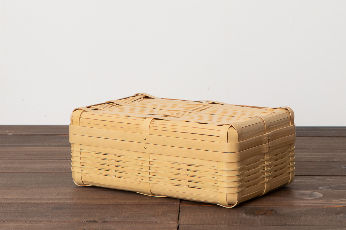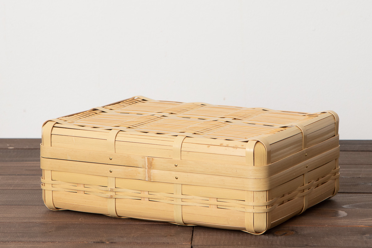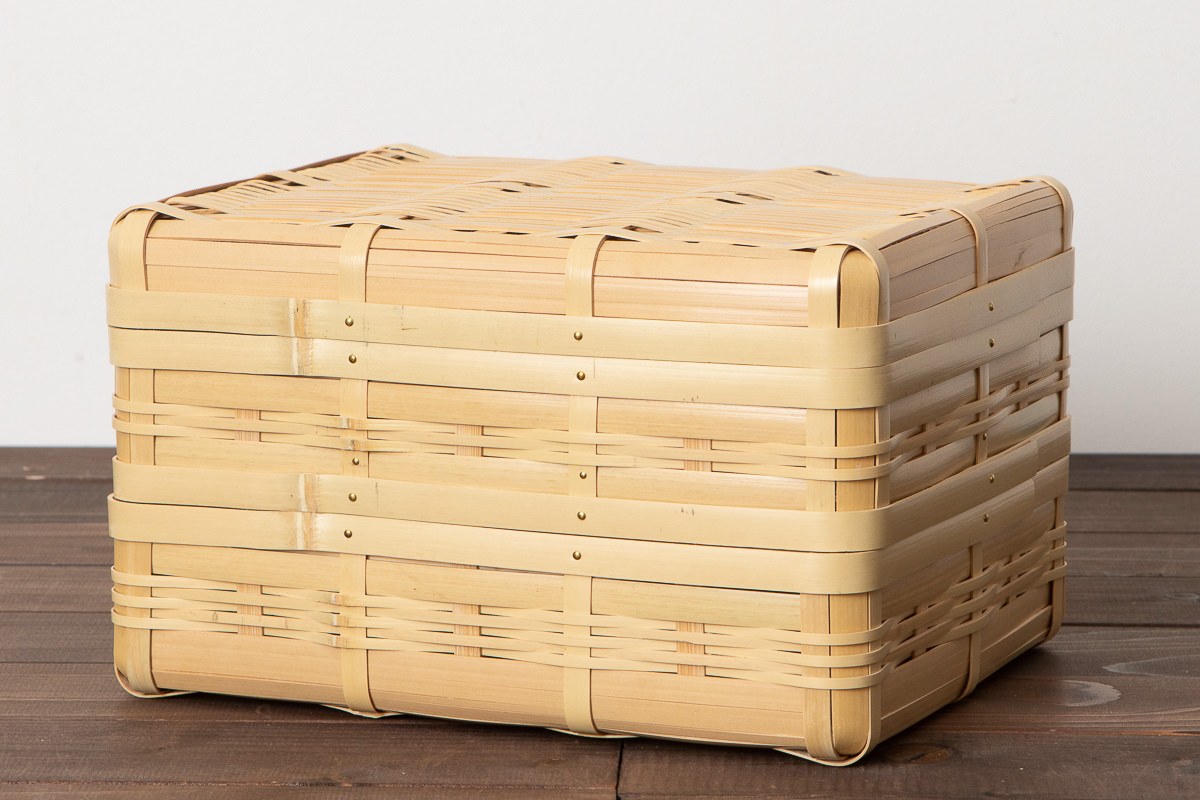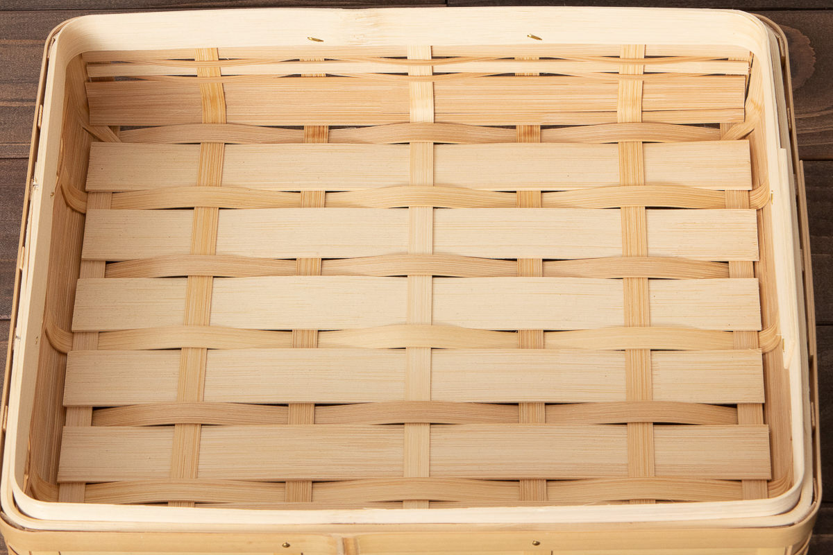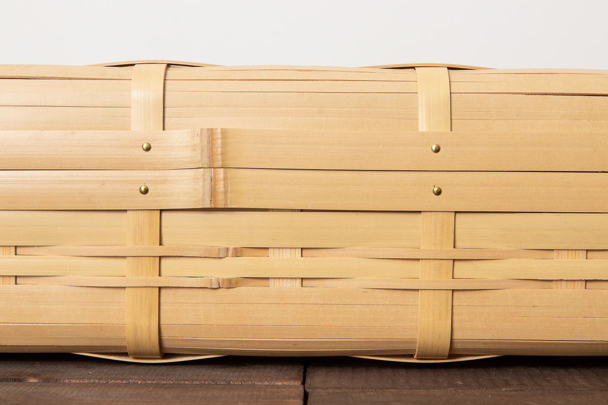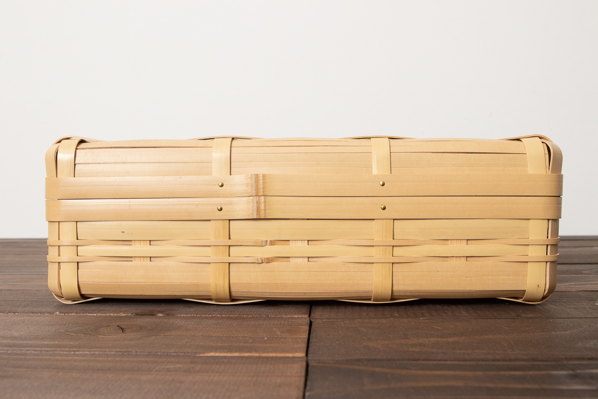 九州は日本のなかでもとくに、良質な真竹が豊富に採れる地でこちらの弁当かごも、九州で採れた真竹を白くさらした「白竹-しろたけ-」を材料にしています。