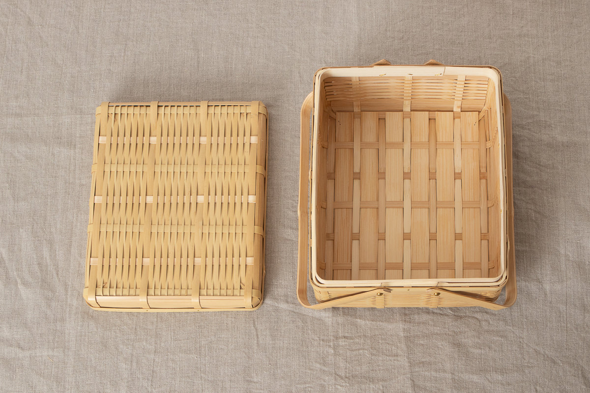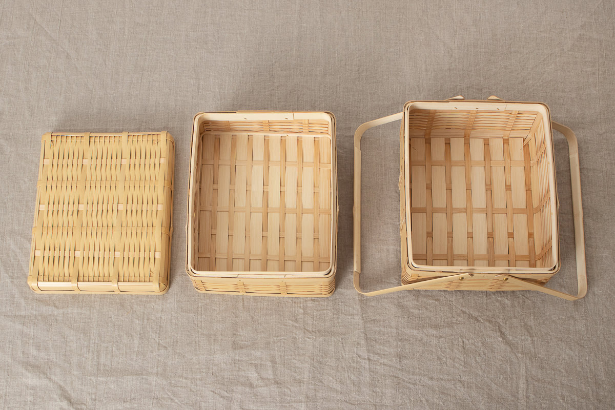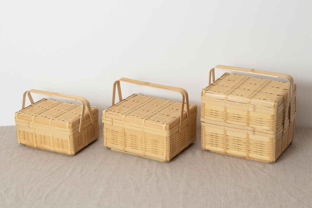 こちらのページでは、持ち手付きの弁当かご、「中」「大」「大二段」の3タイプをご紹介します。