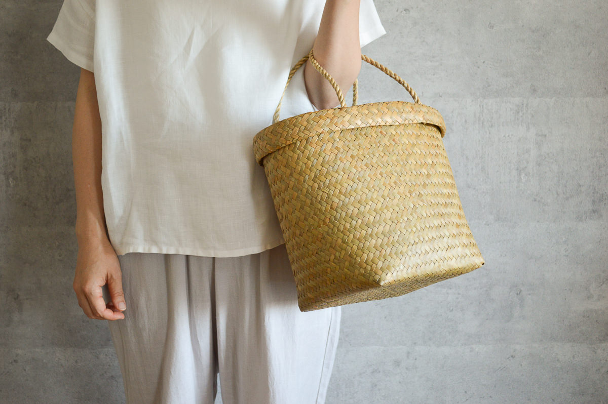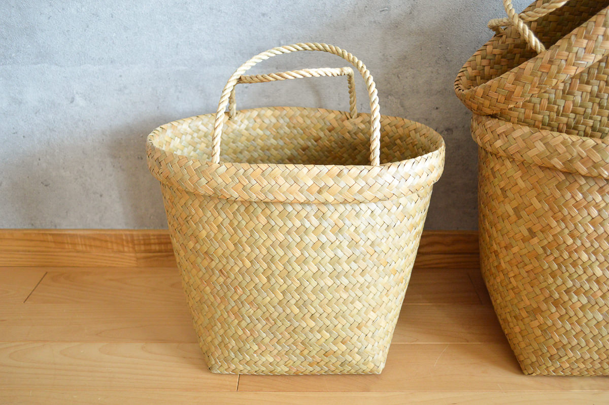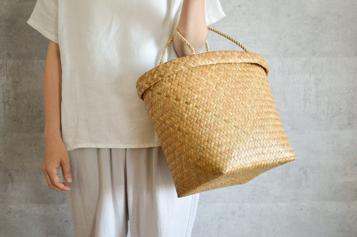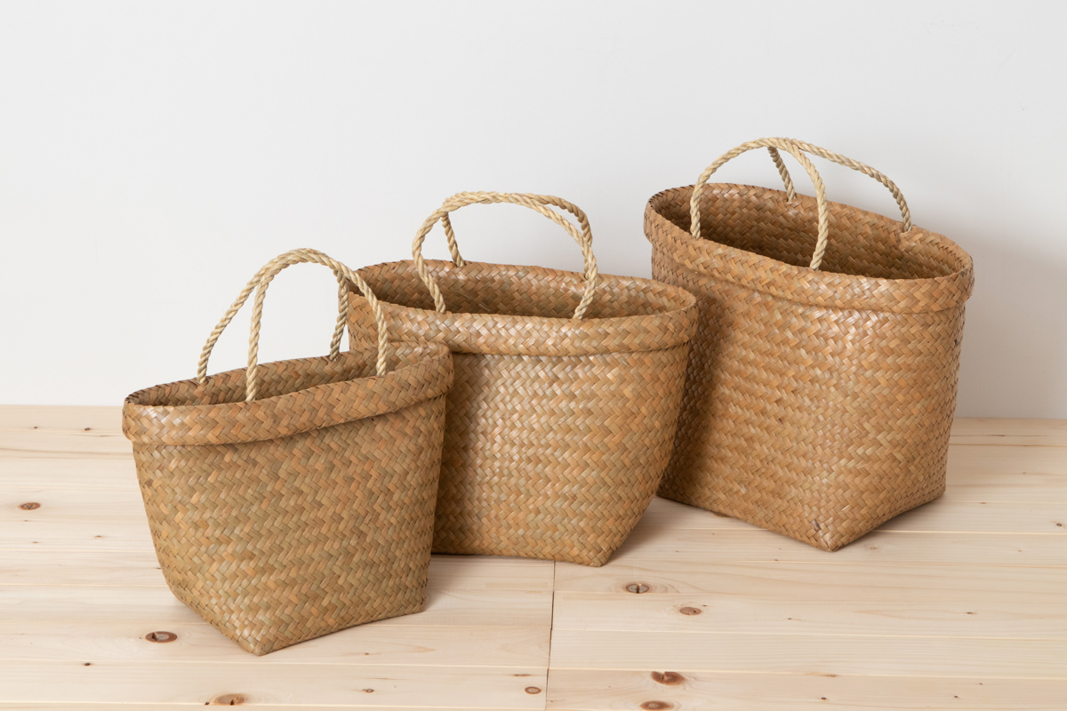 若い世代の編み手が少ないながらも、今、改めてタイ国内でも、こうした自然素材製品の良さが見直され、若い人たちがかごを手に取るようになってきているとのこと。